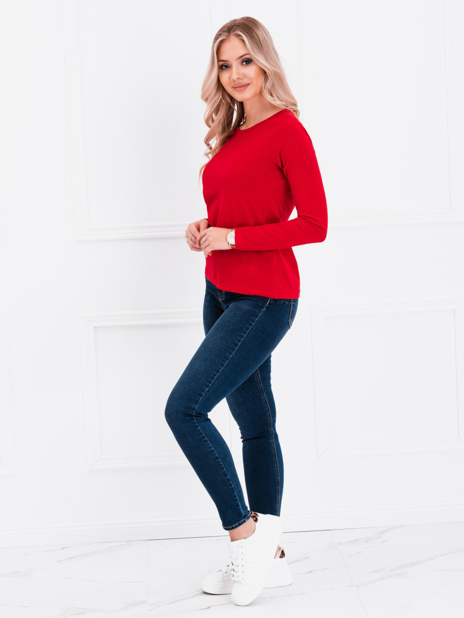 Червена дамска тениска с дълъг ръкав SAM 73 Patty