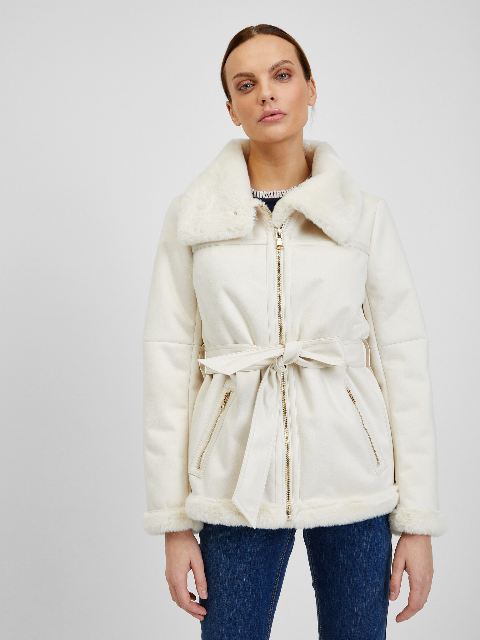 Кремаво дамско яке от велур ORSAY