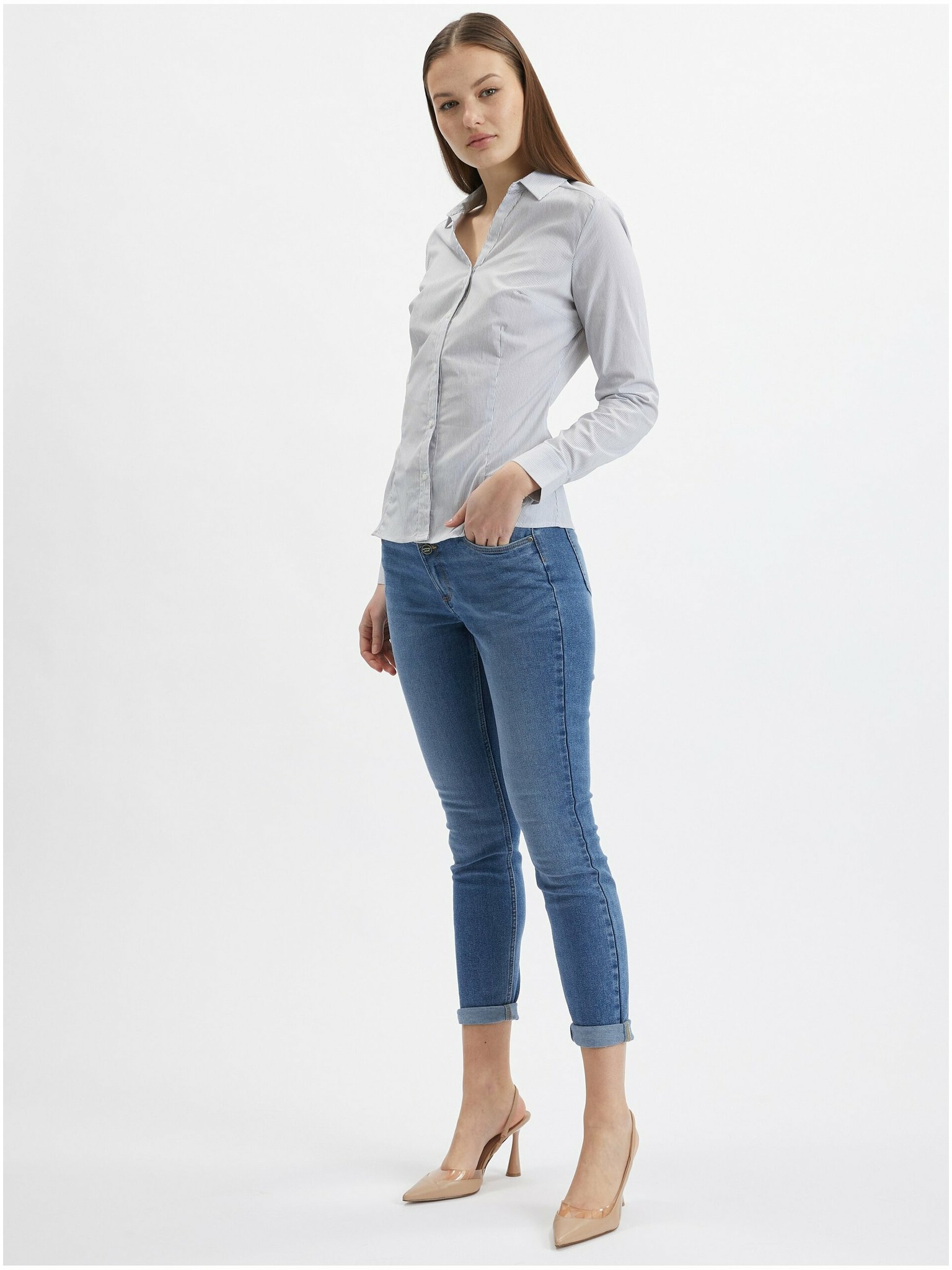 Синьо-бяла дамска риза на райе ORSAY