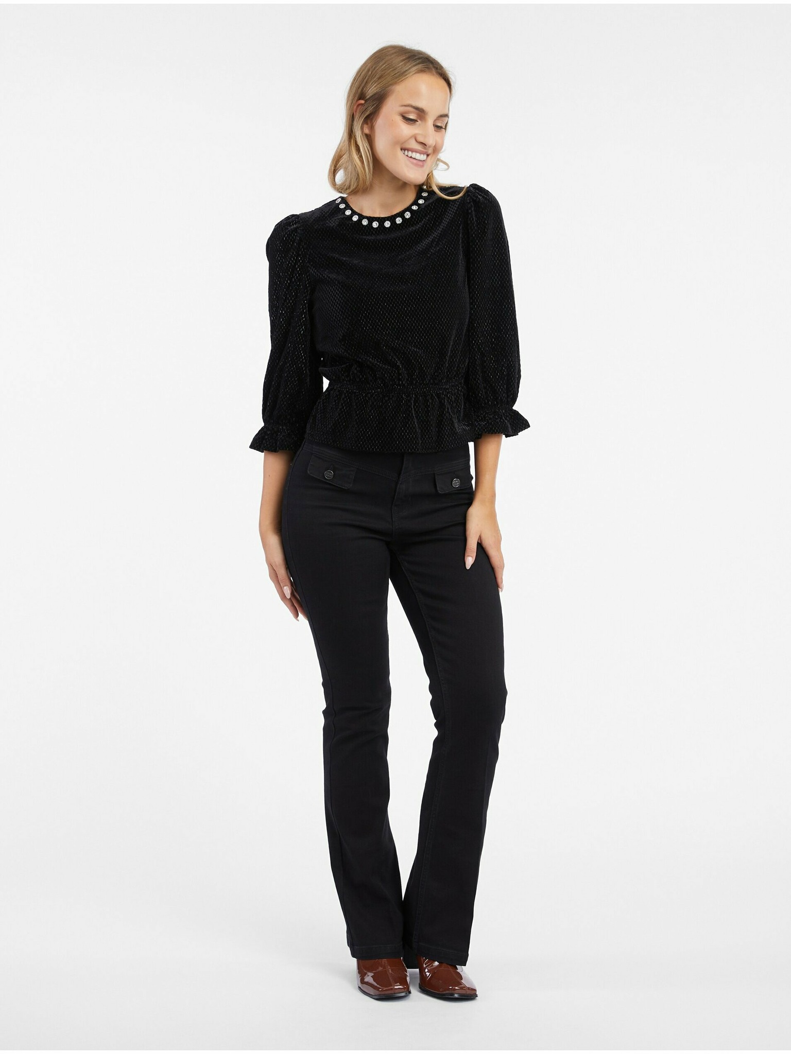 Черна дамска блуза с флорален десен ORSAY