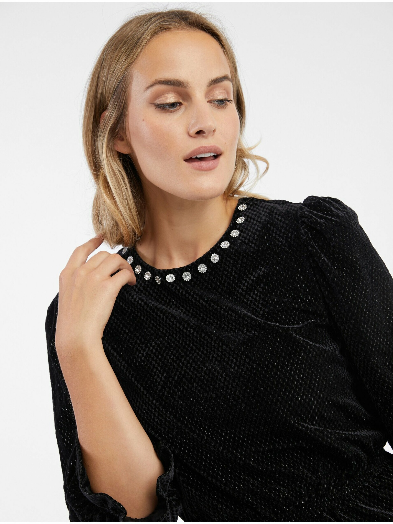 Черна дамска блуза с метална нишка Moodo