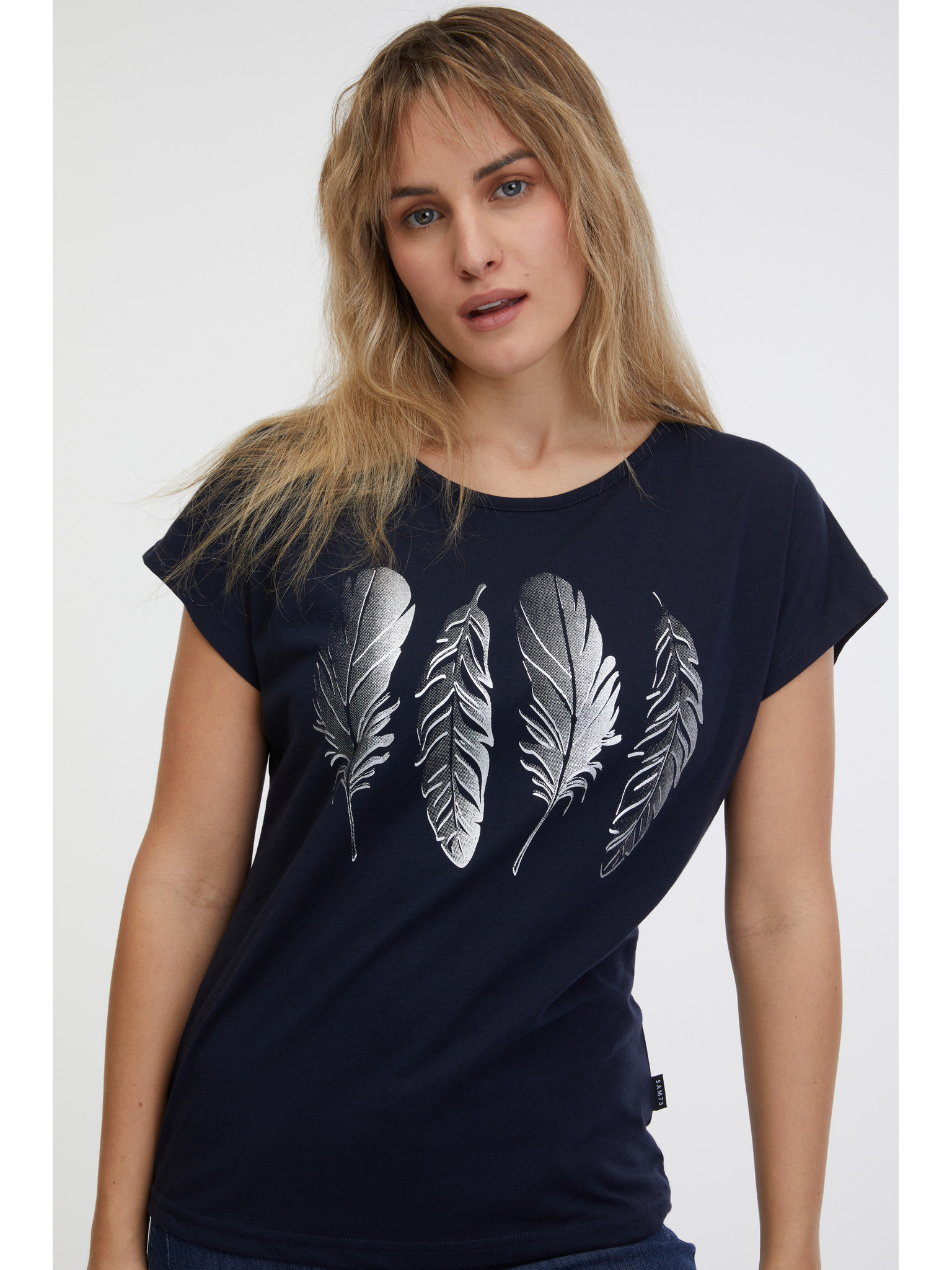 Тъмно синя дамска основна тениска SAM 73 Nadia