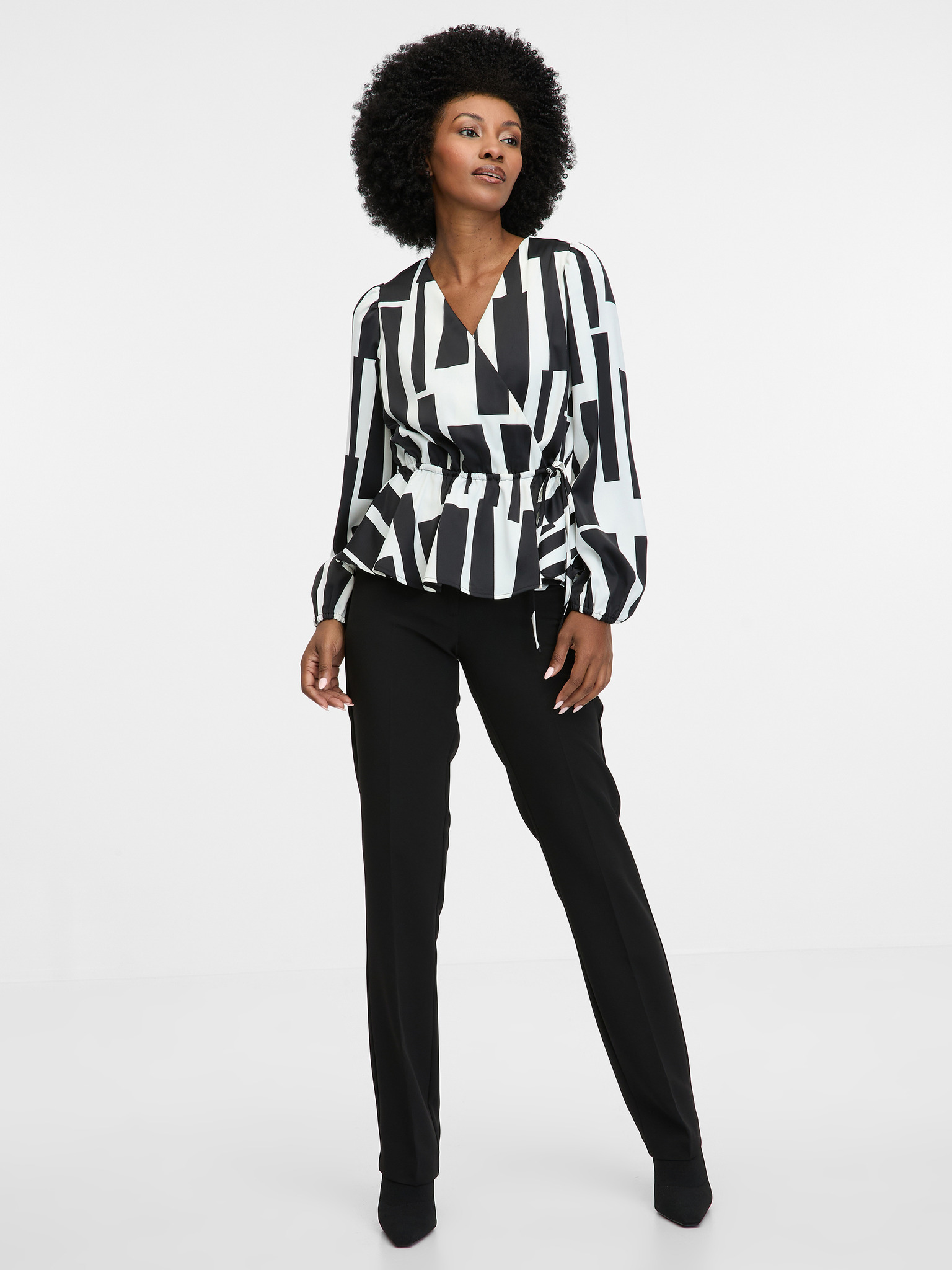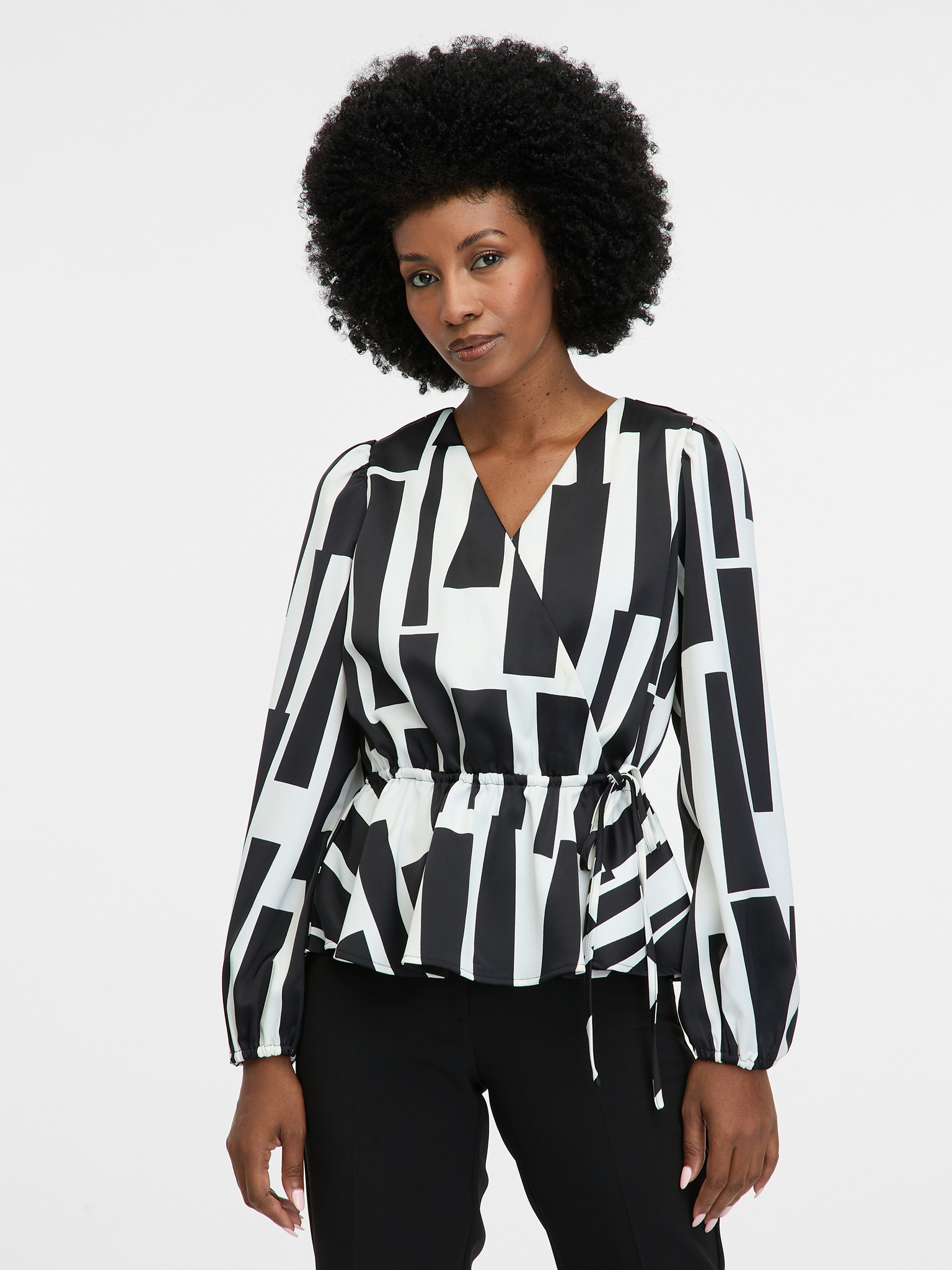 Черна дамска блуза с десен ORSAY