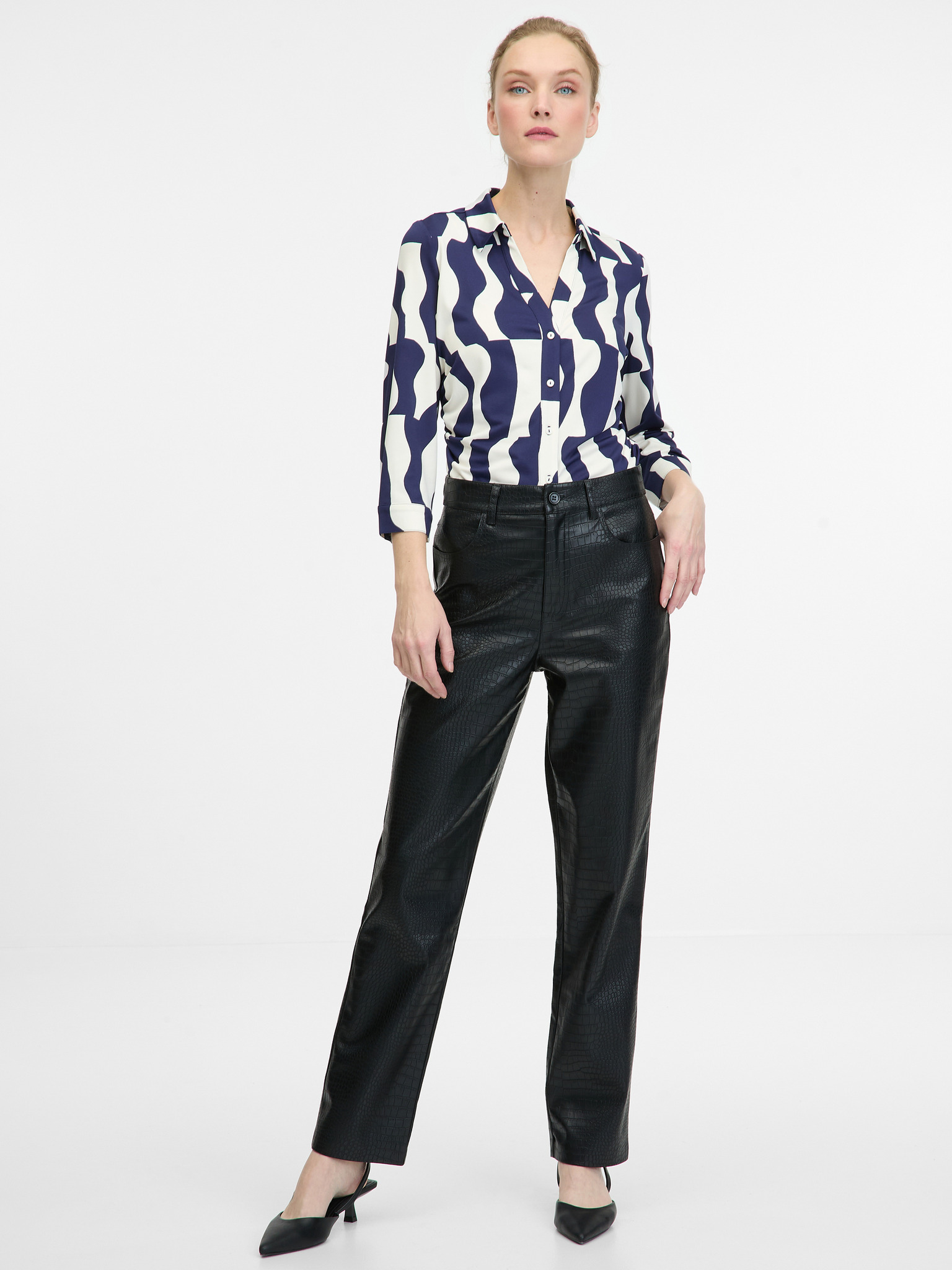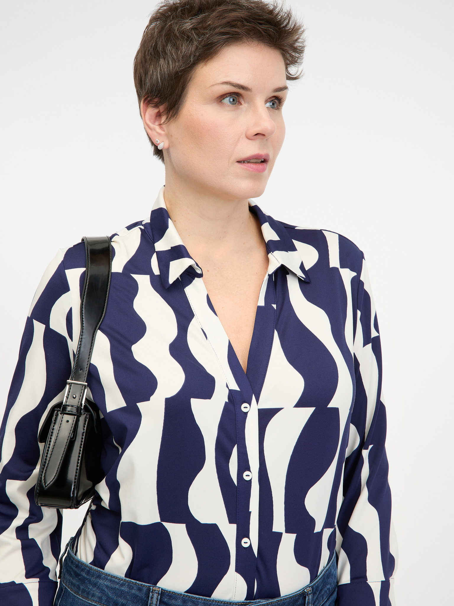 Синьо-бяла щампована блуза