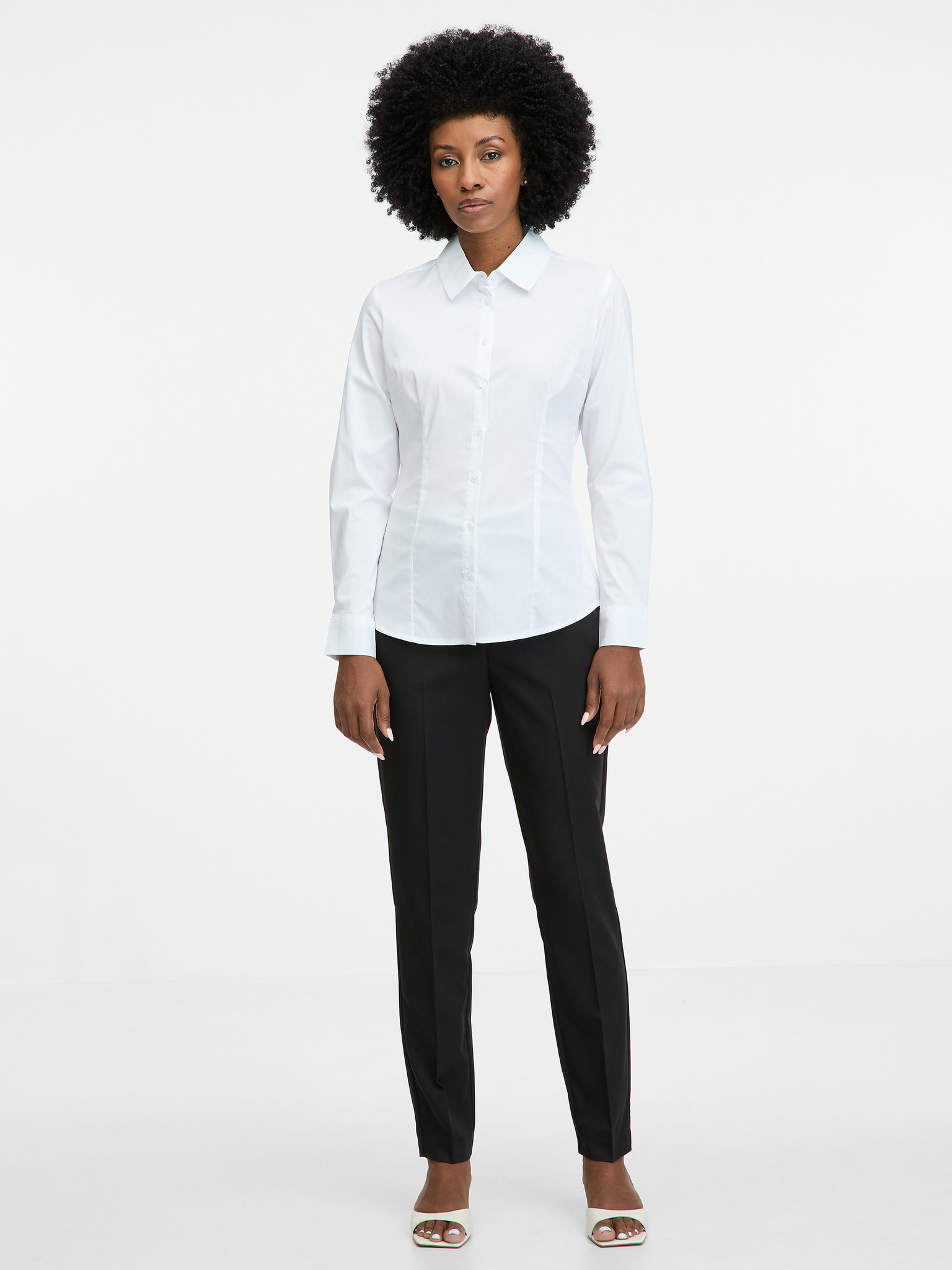 Бяло-черен дамски панталон с десен от велур ORSAY