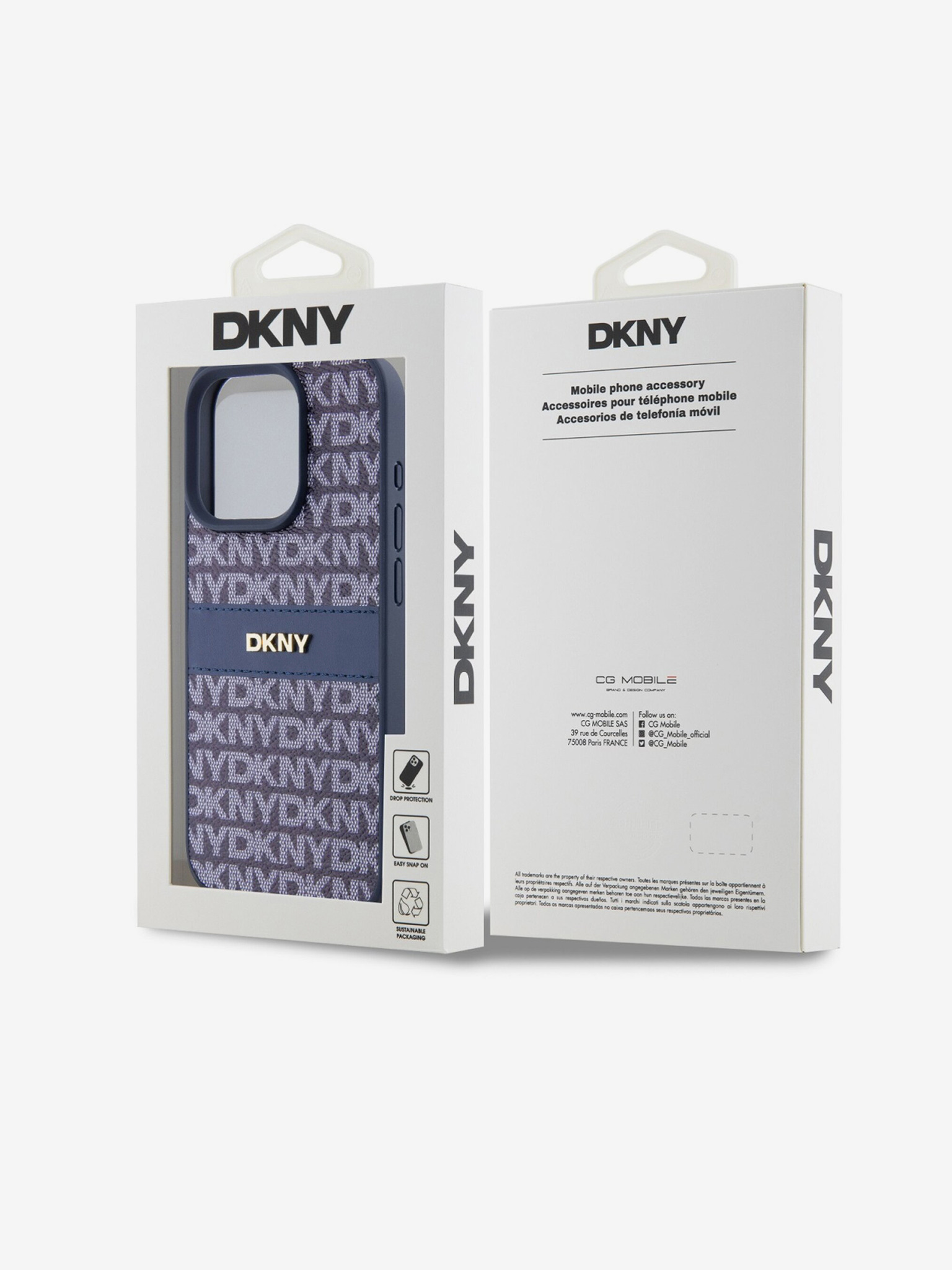 DKNY PU кожа с повтарящ се десен ивици заден капак за iPhone 16 Blue