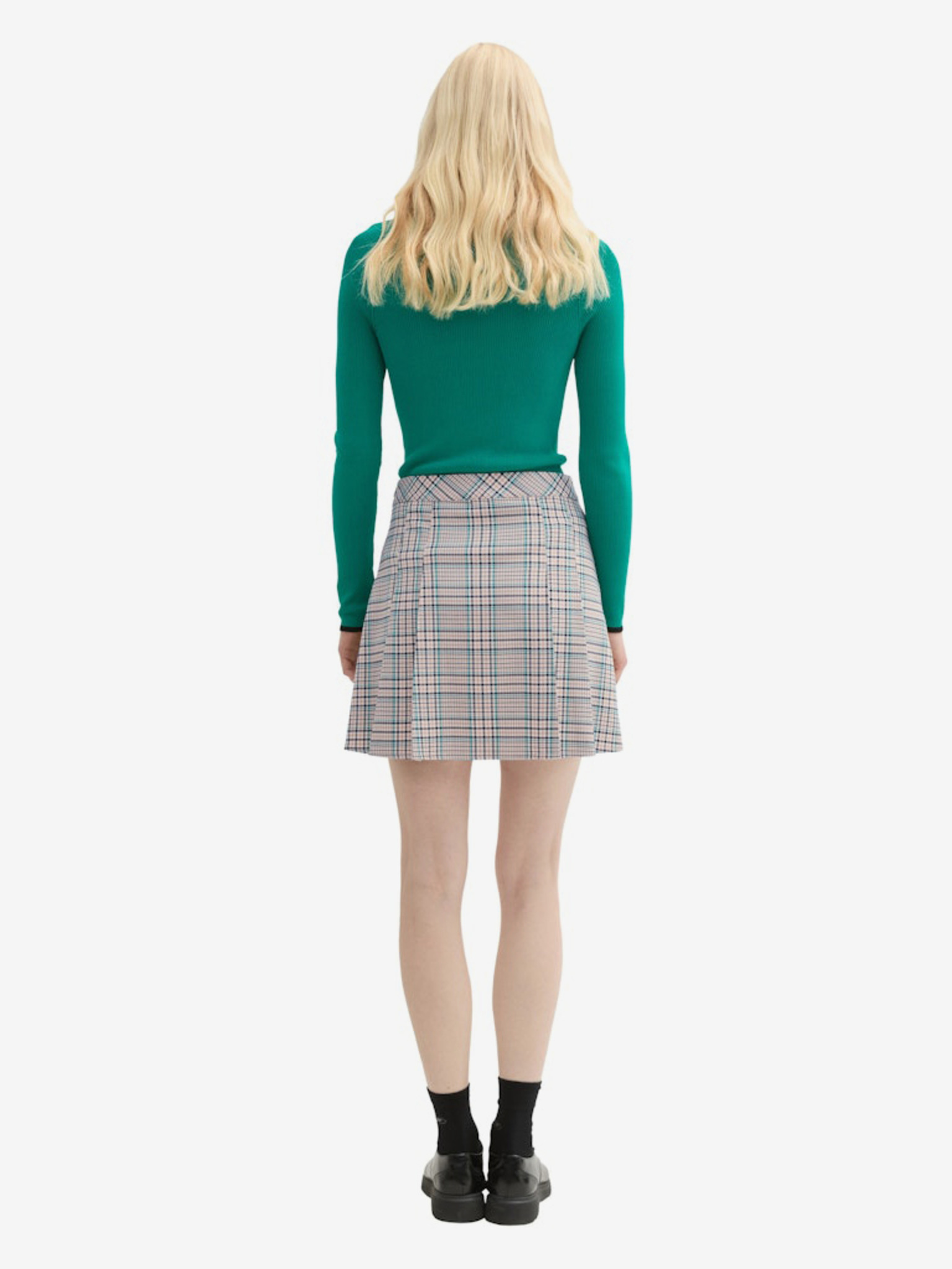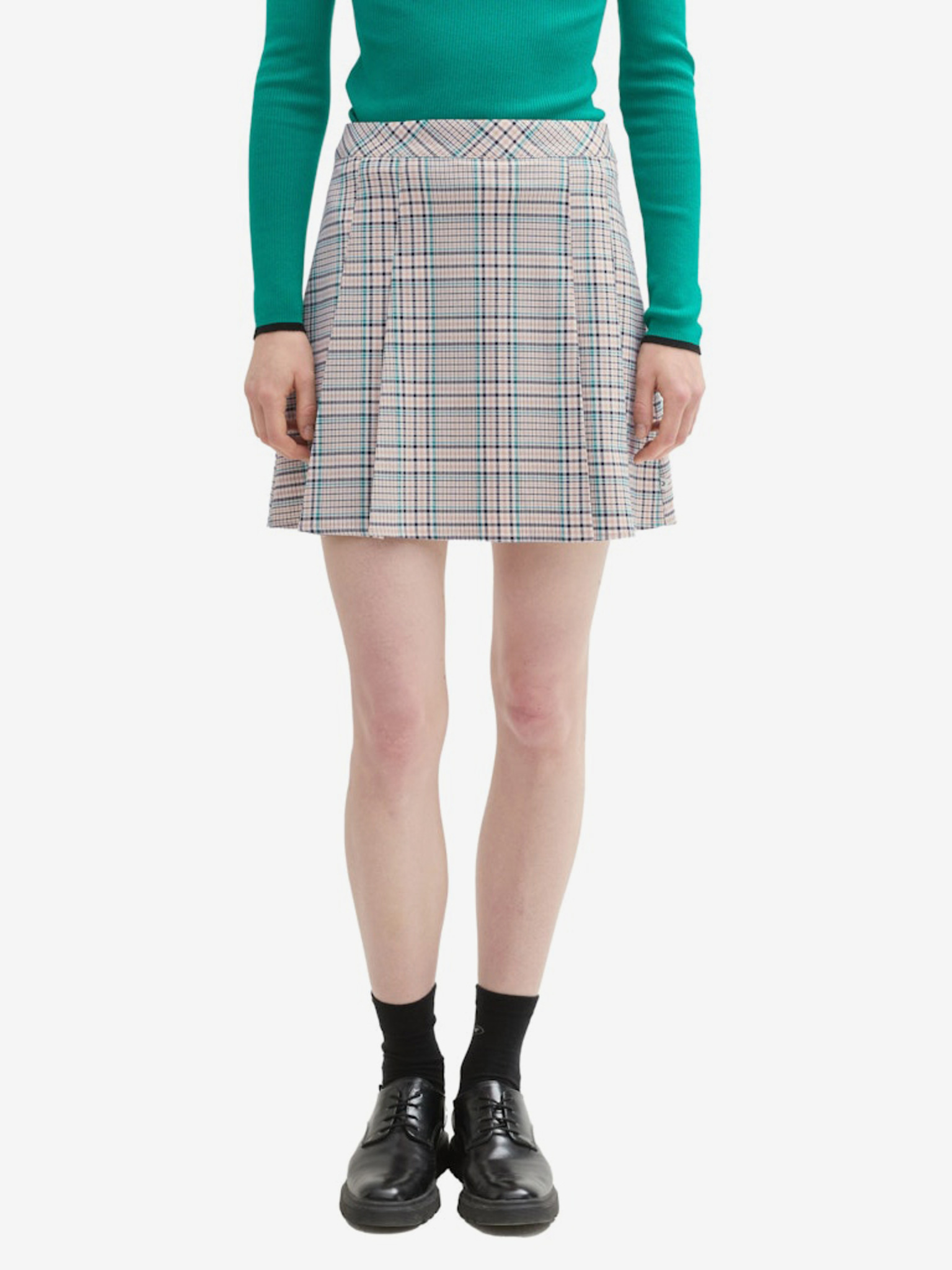 Бежова дамска плисирана пола с шарка Moodo