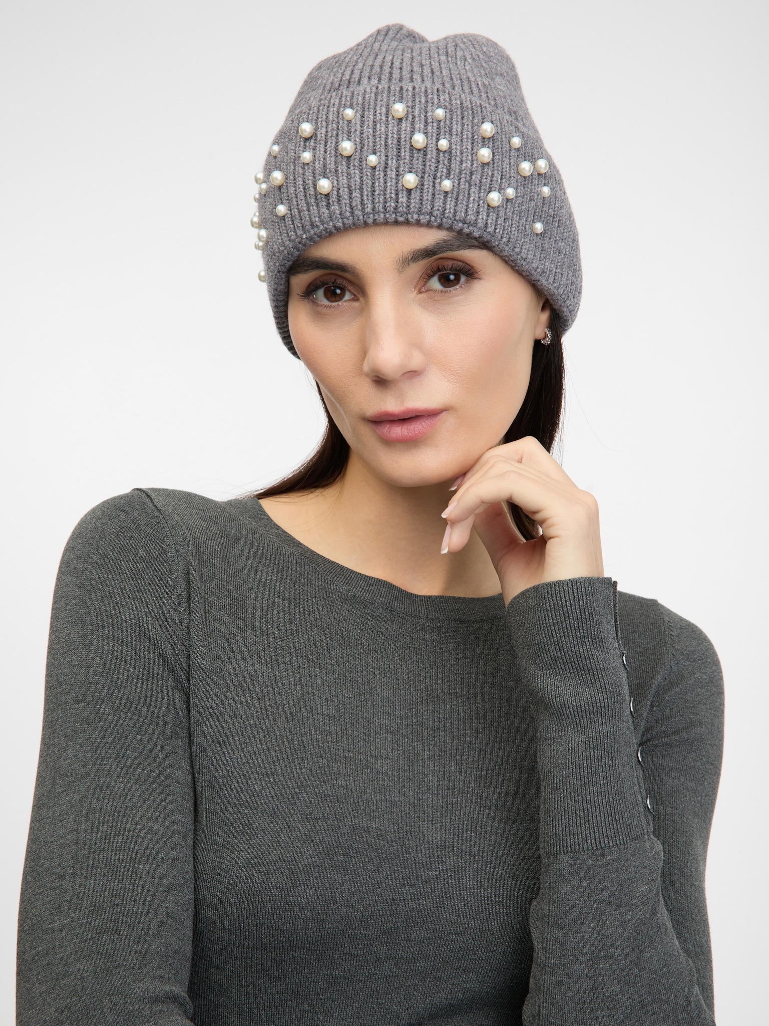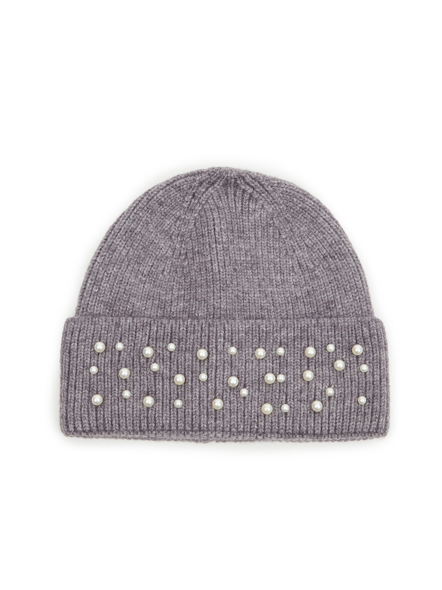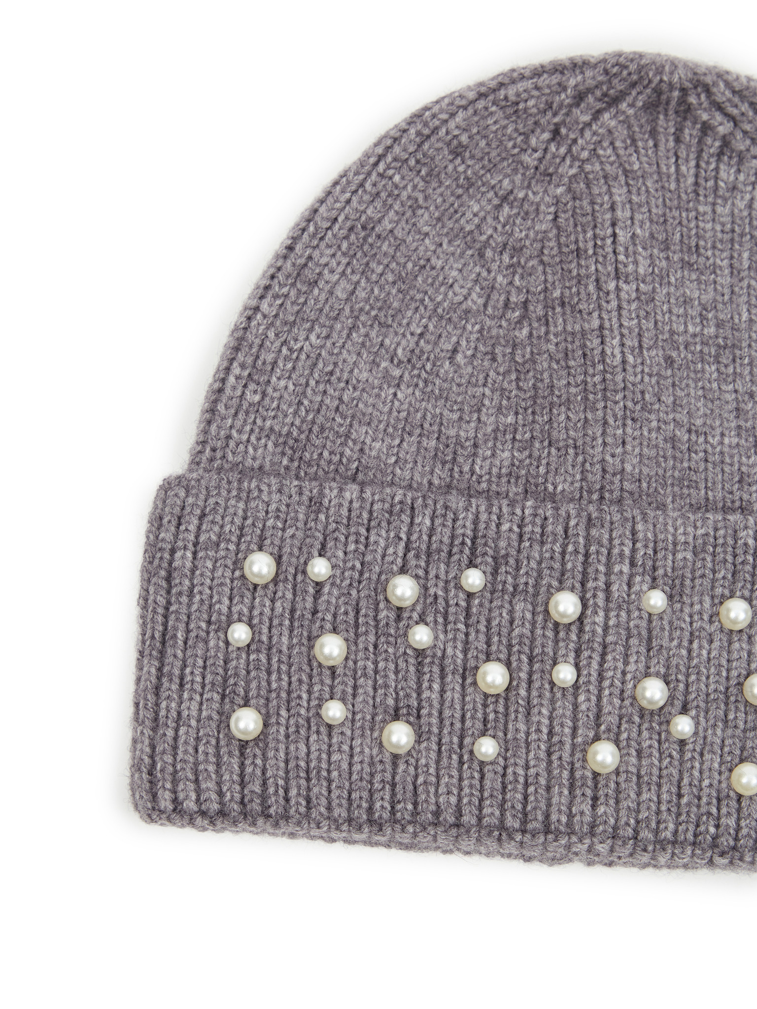 Ребрестa шапка с перли в сиво Moodo