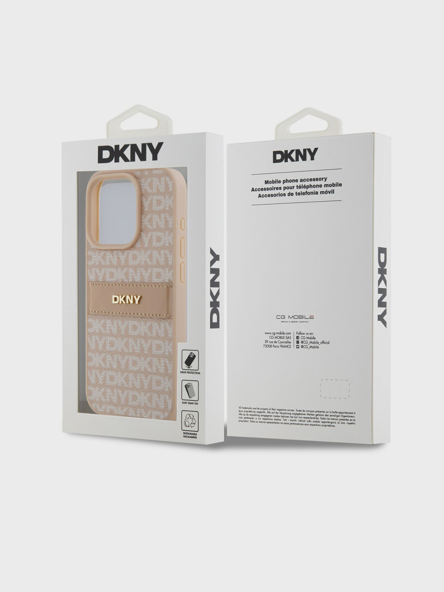 PU Leather Repeat Pattern Tonal Stripe Back Cover за iPhone 14 Pro Pink DKNY
