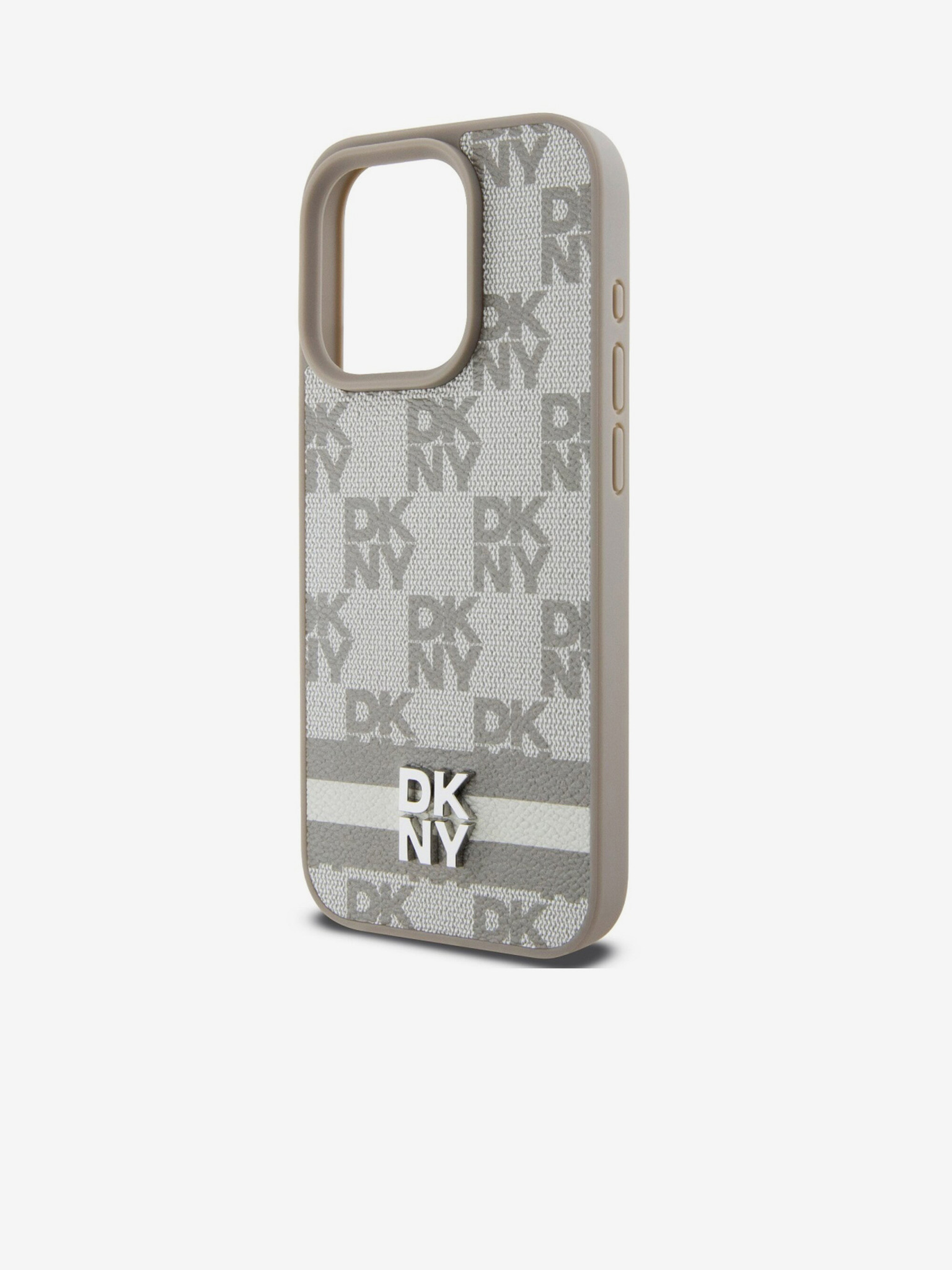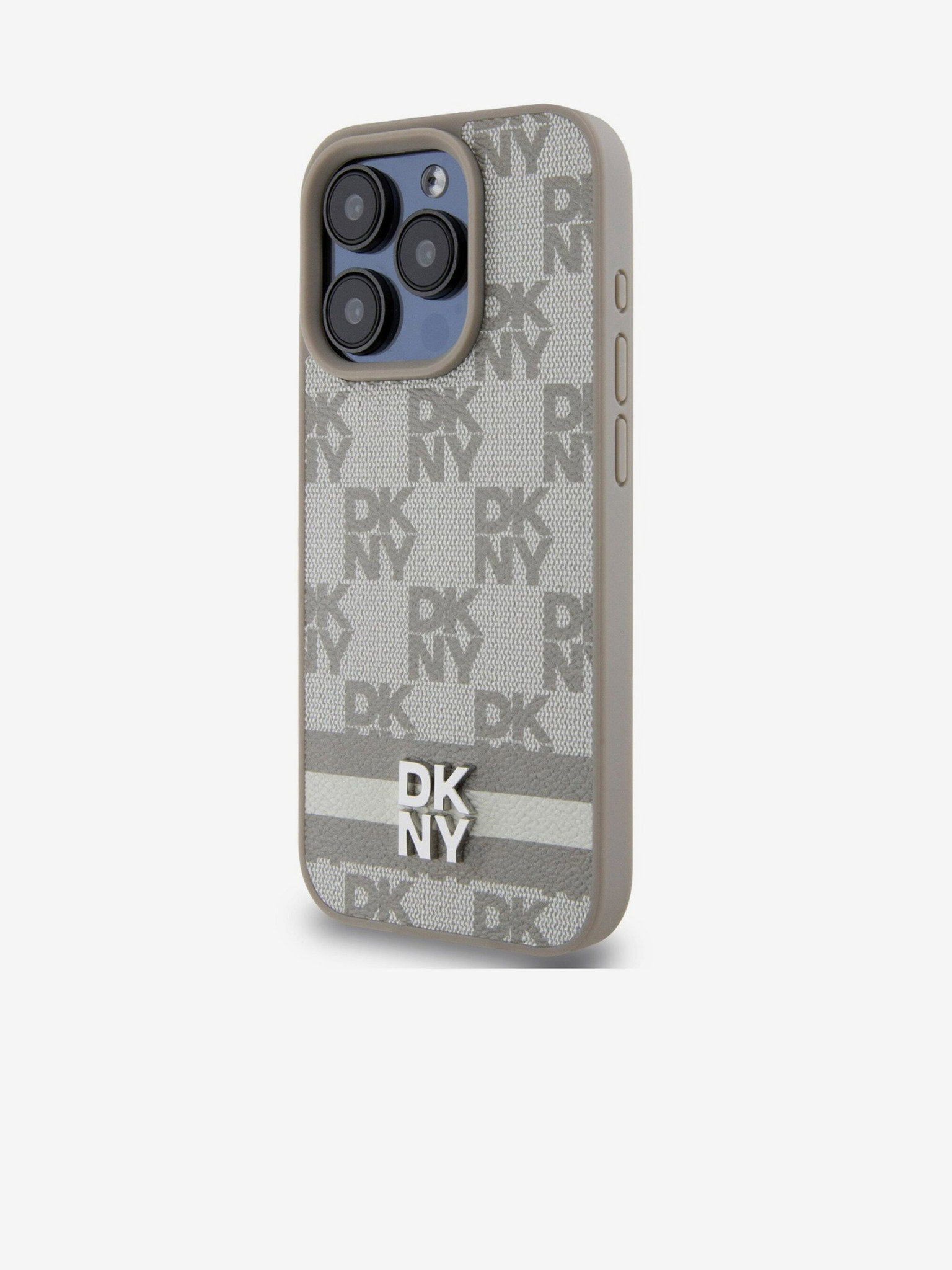 Заден капак от карирана кожа с шарка и райе за iPhone 13 Pro Beige DKNY
