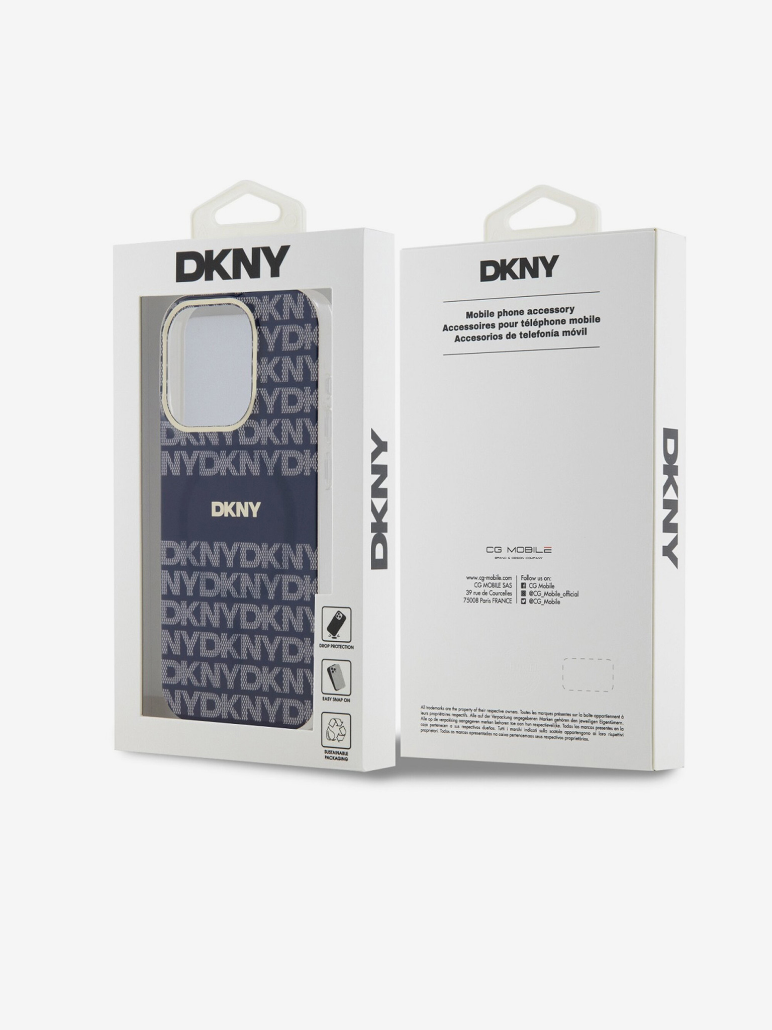 PC/TPU Повтарящ се модел с тонални ивици Magsafe заден капак за iPhone 15 Pro Blue DKNY