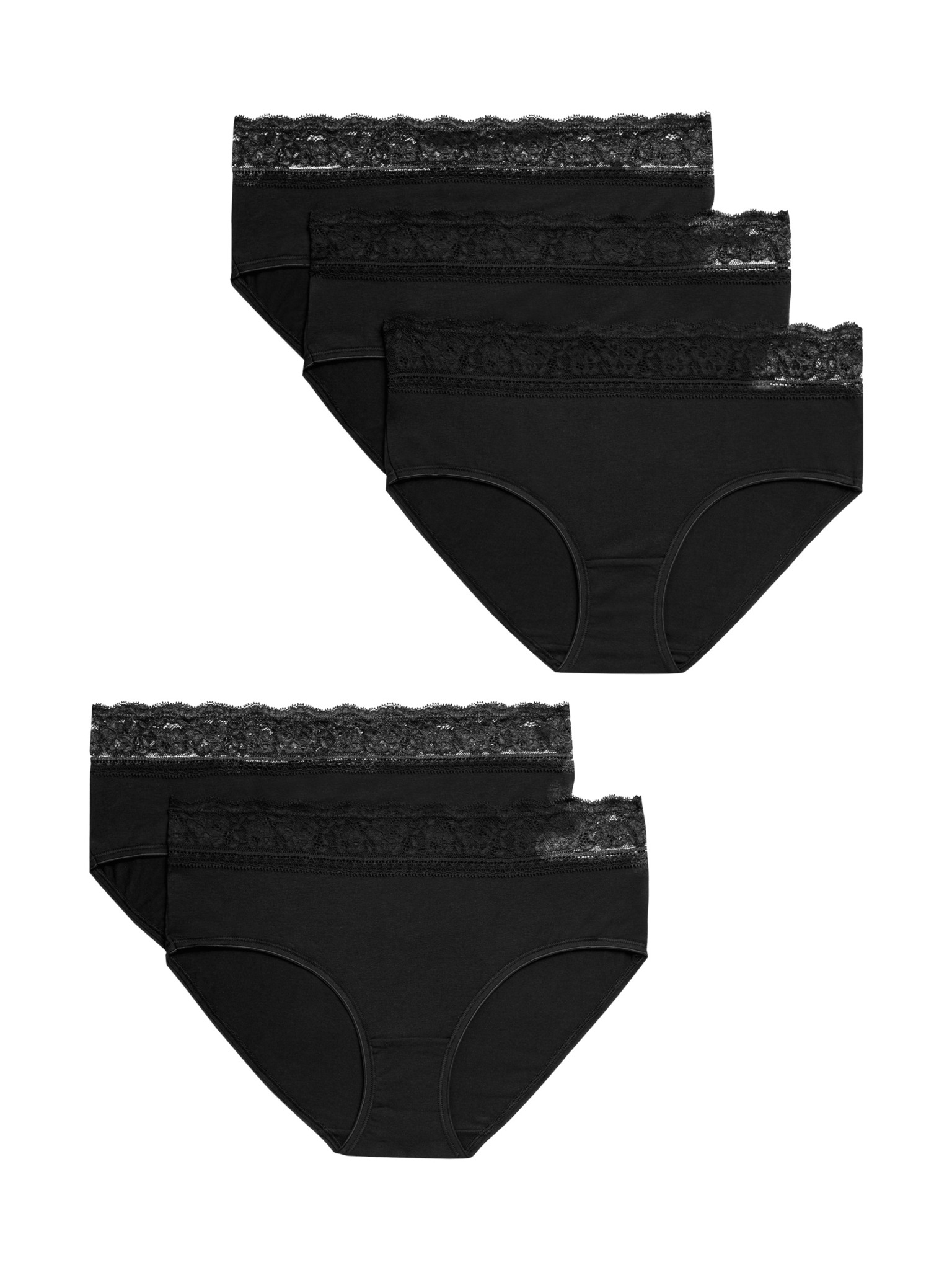 Памучни бикини с талия от Lycra®, 5 бр. в опаковка Marks & Spencer черни