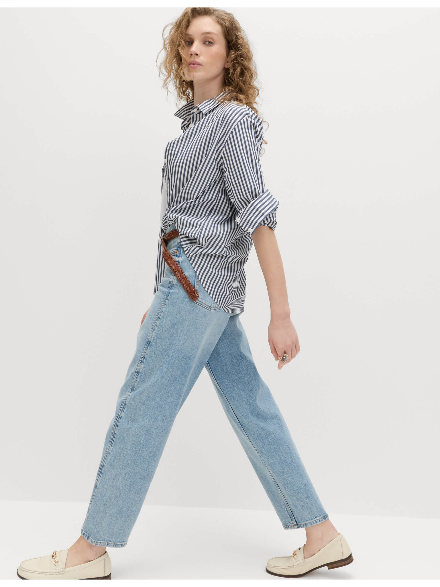 Дънки кройка Mom с висока талия Marks & Spencer сметанова