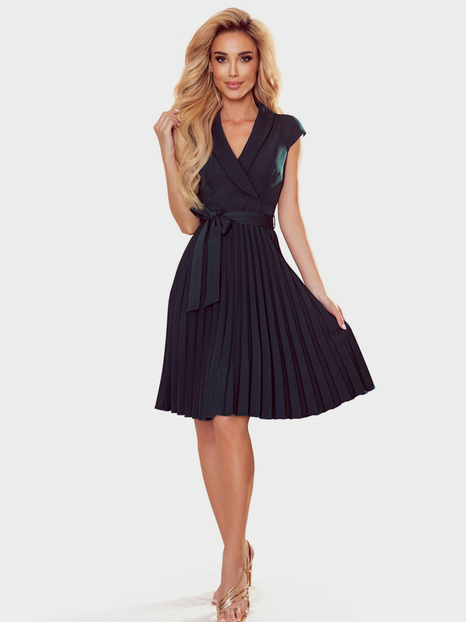 Плисирана рокля с деколте тип "молив" - зелена Numoco WENDY