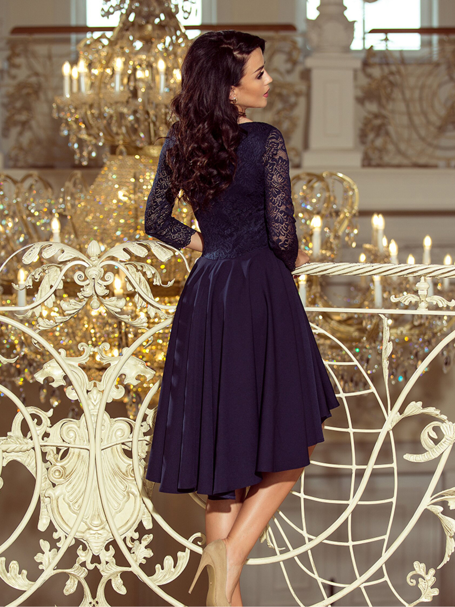Ексклузивна рокля с дантела - тъмно синя Numoco NICOLLE