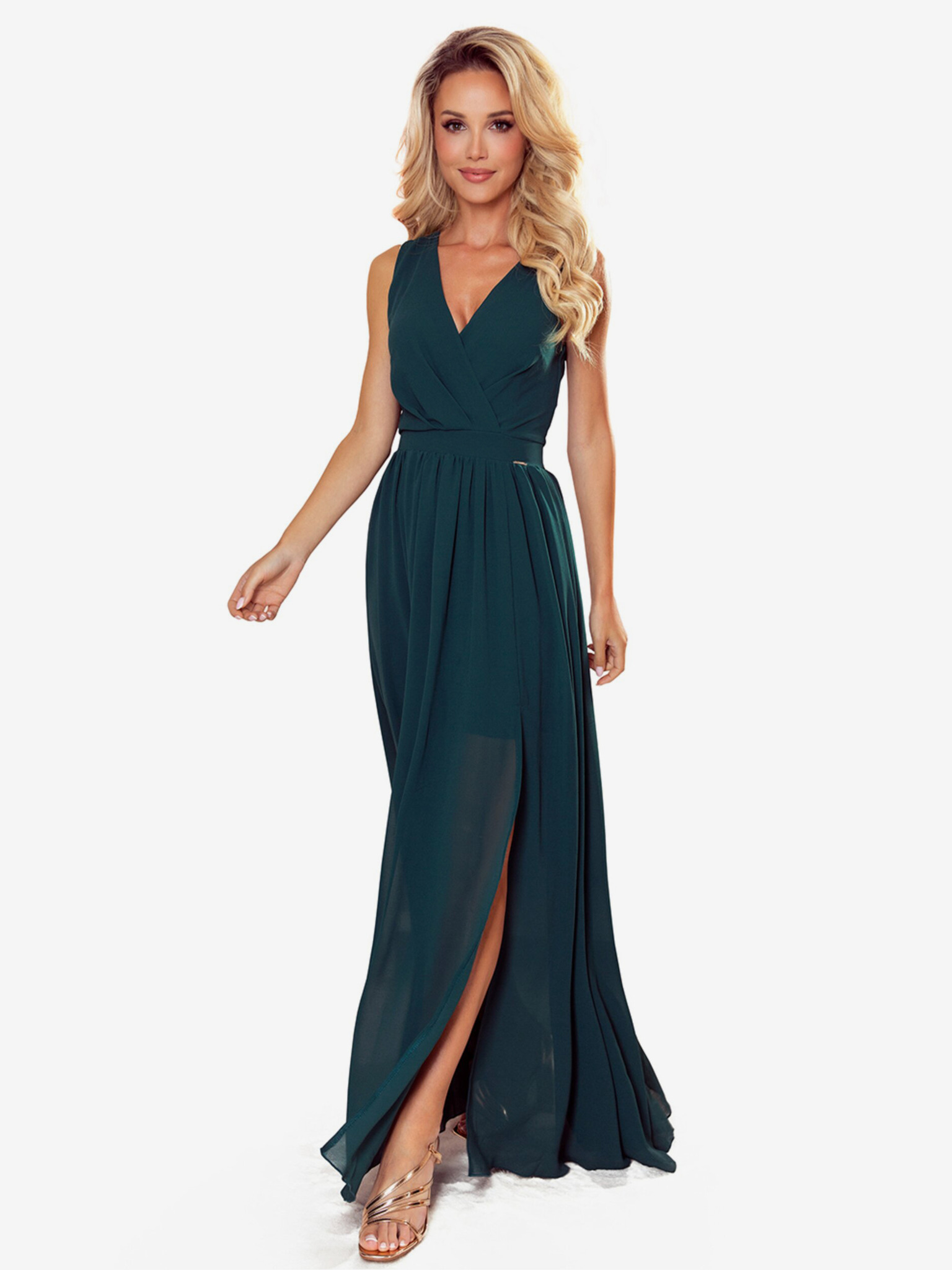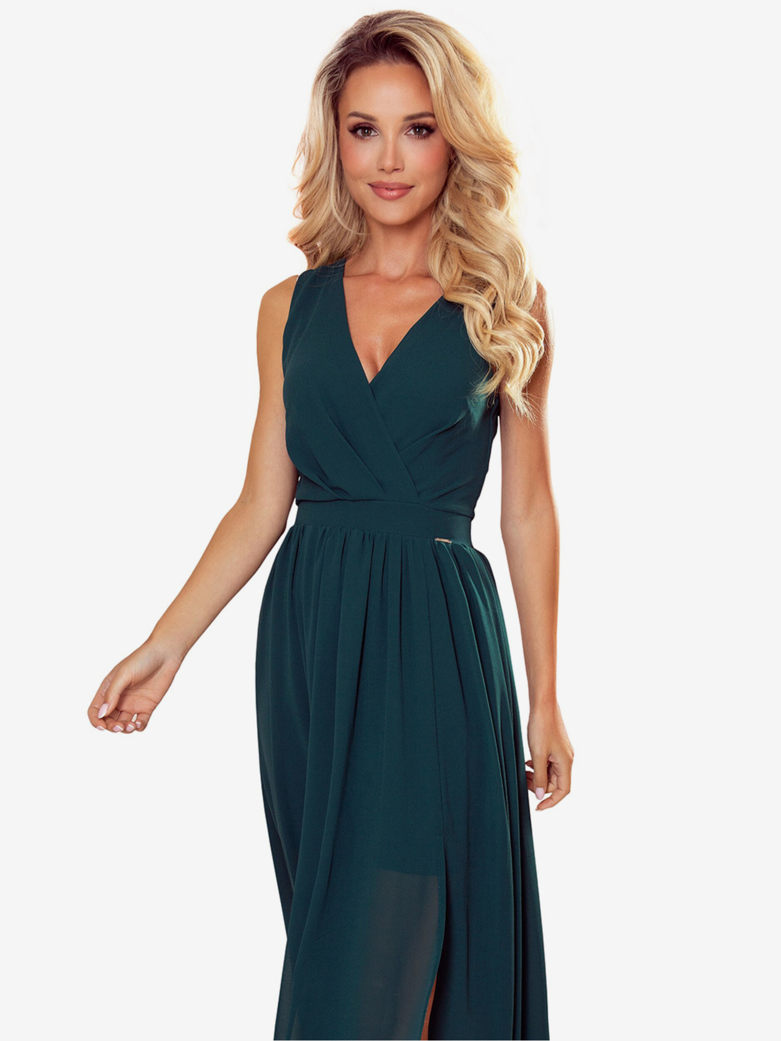 Дълга елегантна рокля с деколте - зелена Numoco CINDY