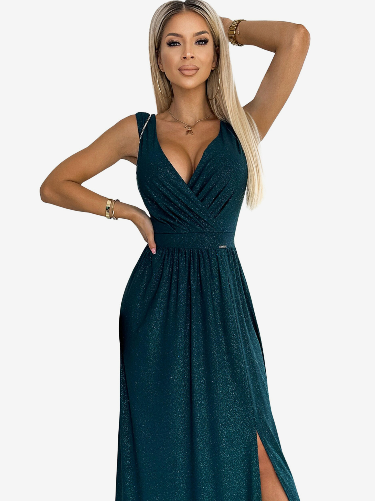 Дълга елегантна рокля с деколте - зелена Numoco CINDY