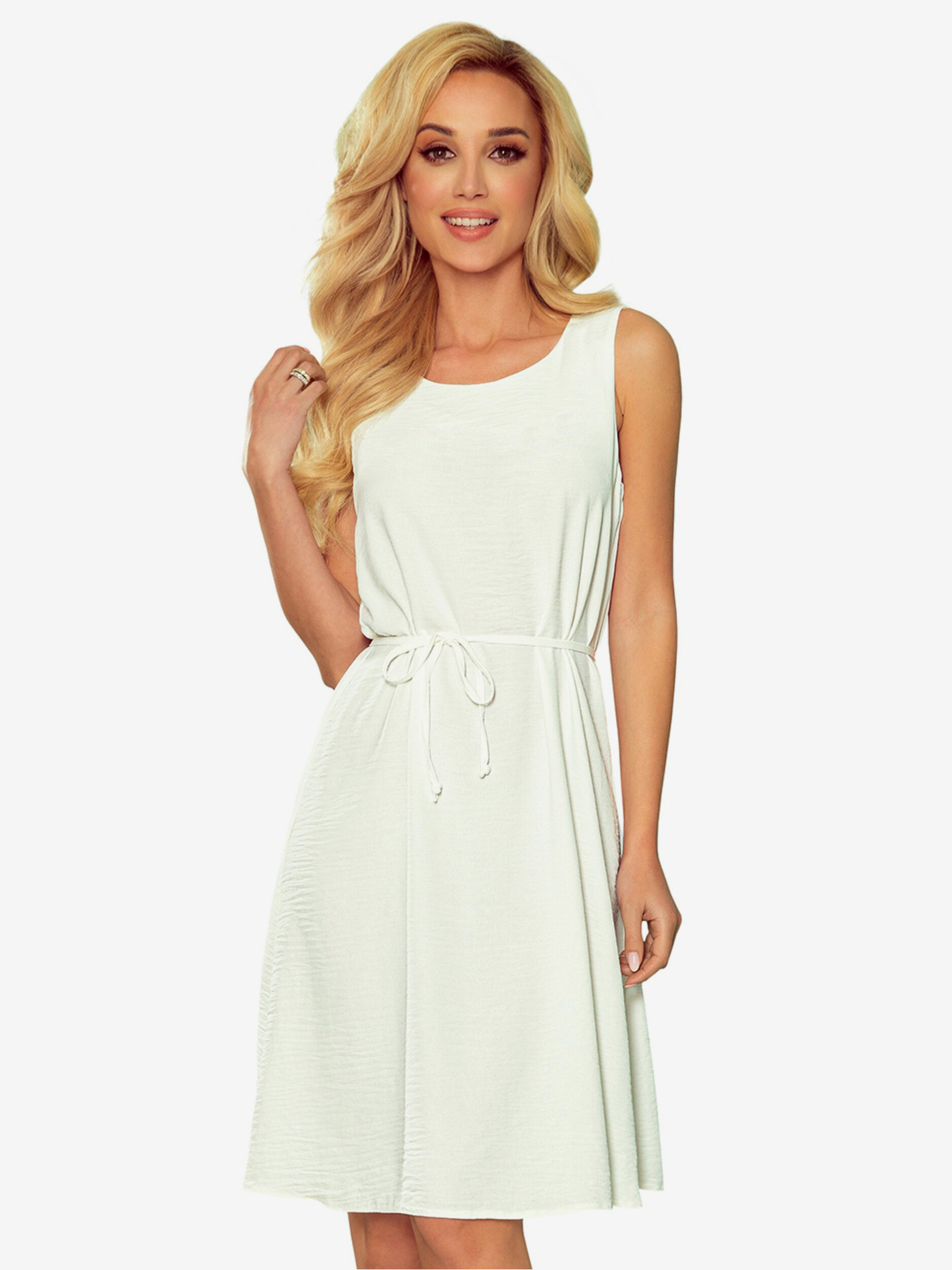 Рокля с дантела и златен колан - бяла Numoco GRETA