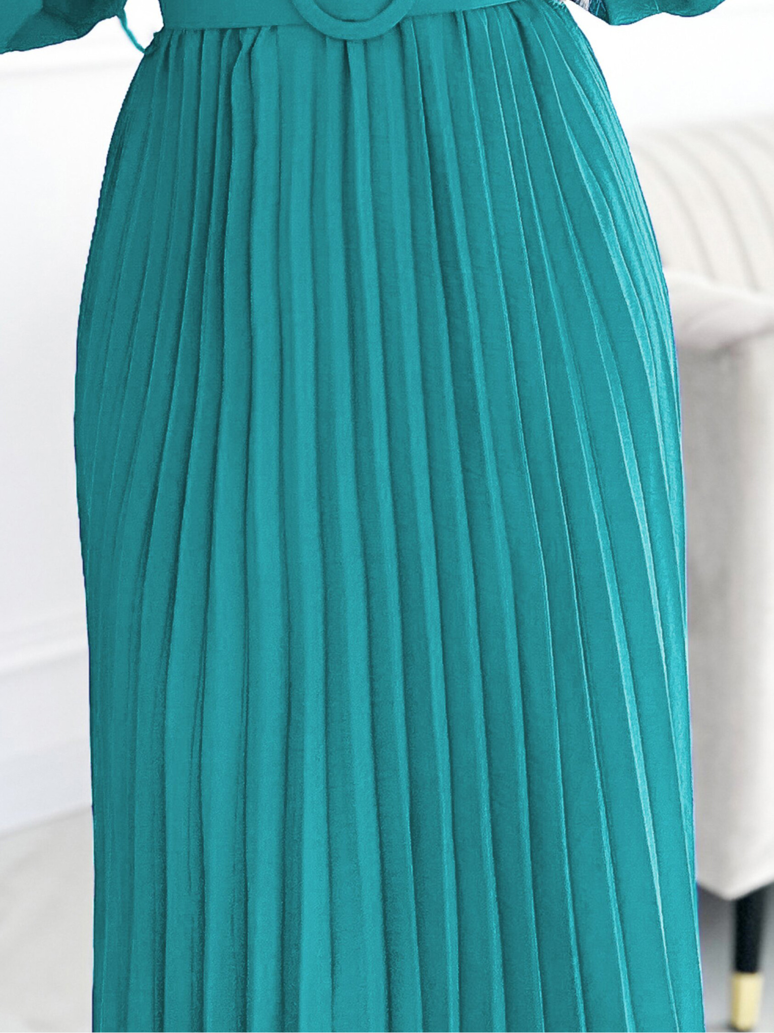 Плисирана миди рокля с падащо деколте - бежово Numoco