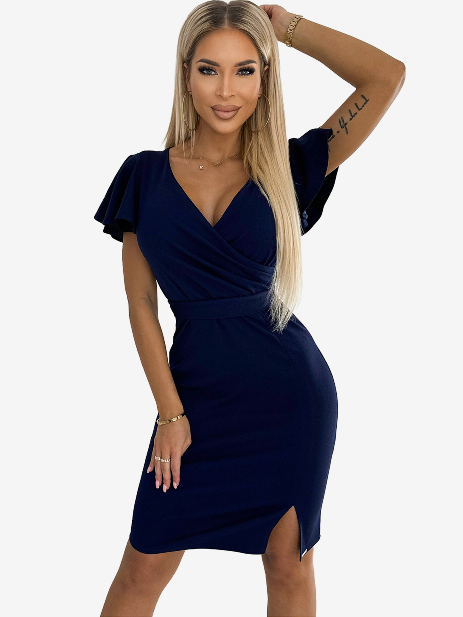 Рокля с разкроено деколте - тъмносиня Numoco SCARLETT