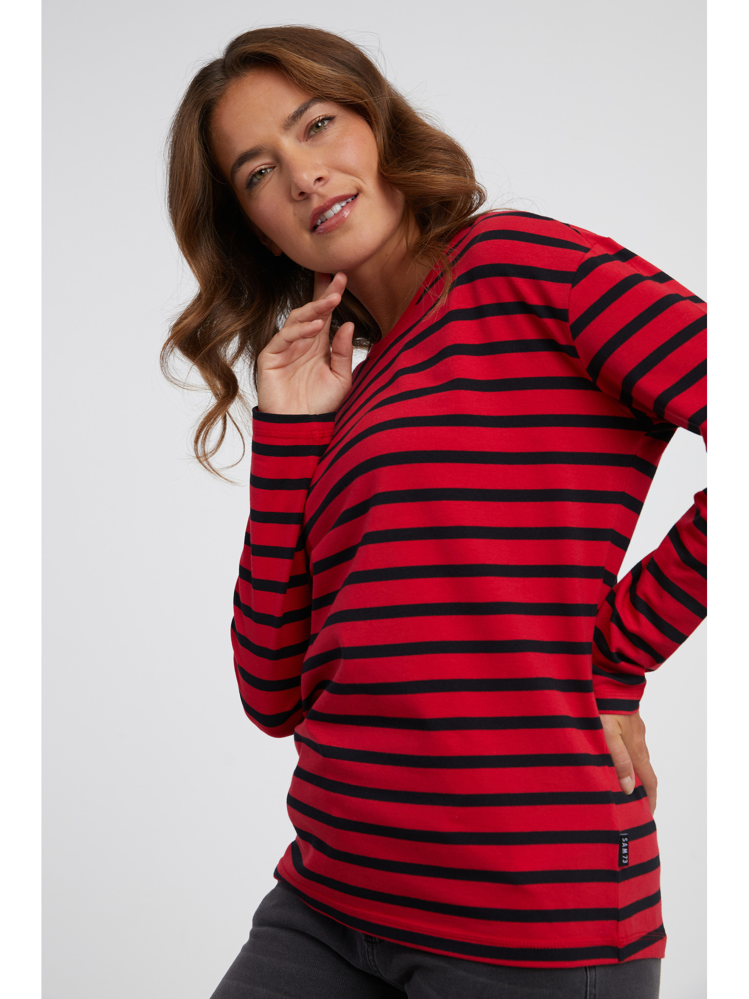 Червена дамска тениска с дълъг ръкав SAM 73 Patty