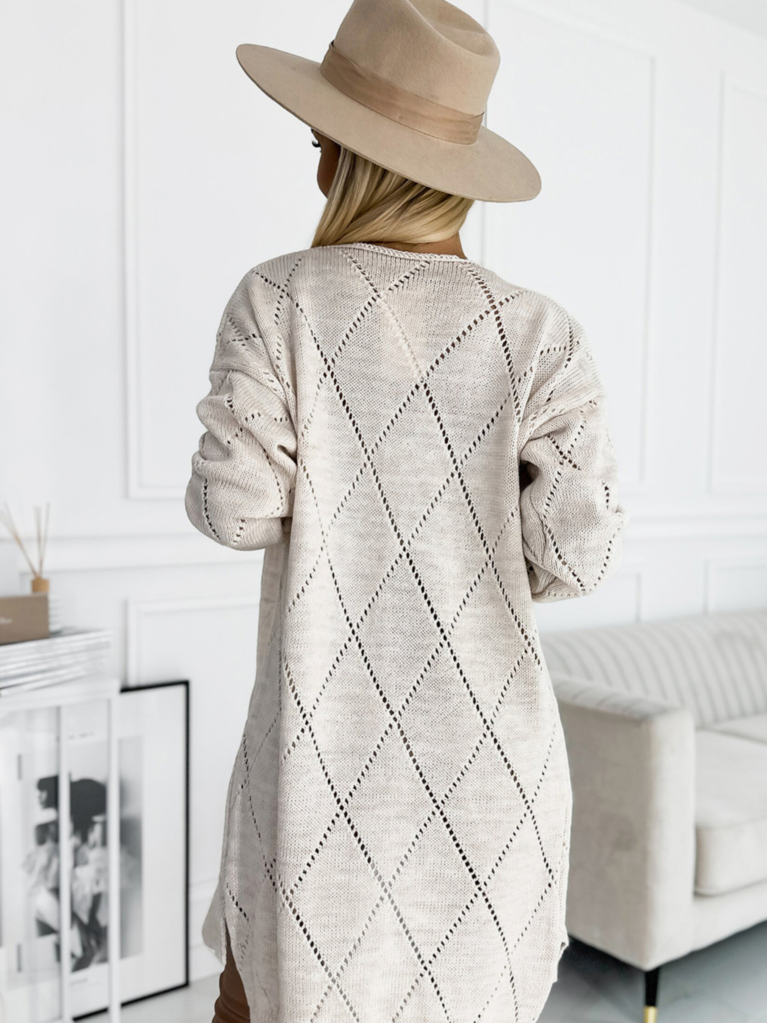 Кардиган - дълъг суитшърт с джобове - бежов