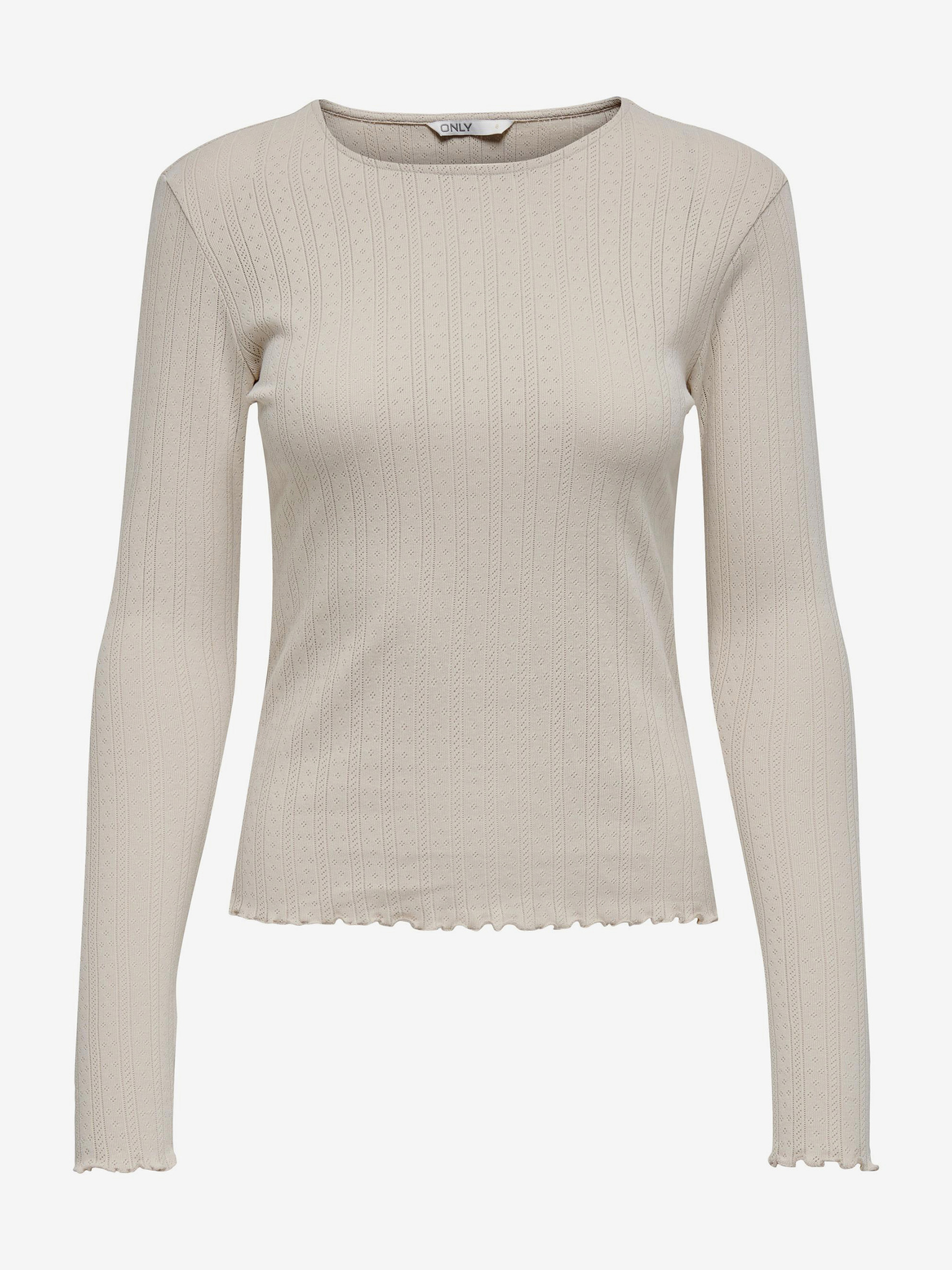 Бежов дамски топ с дълъг ръкав