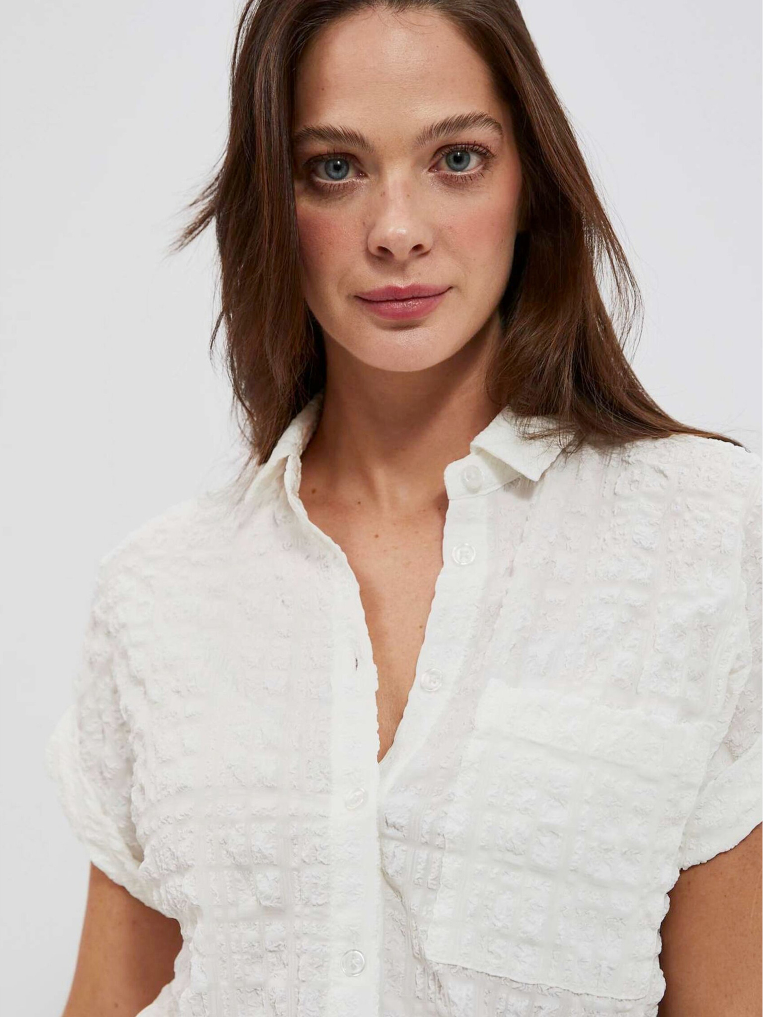 Дамска бяла блуза с висока яка Moodo