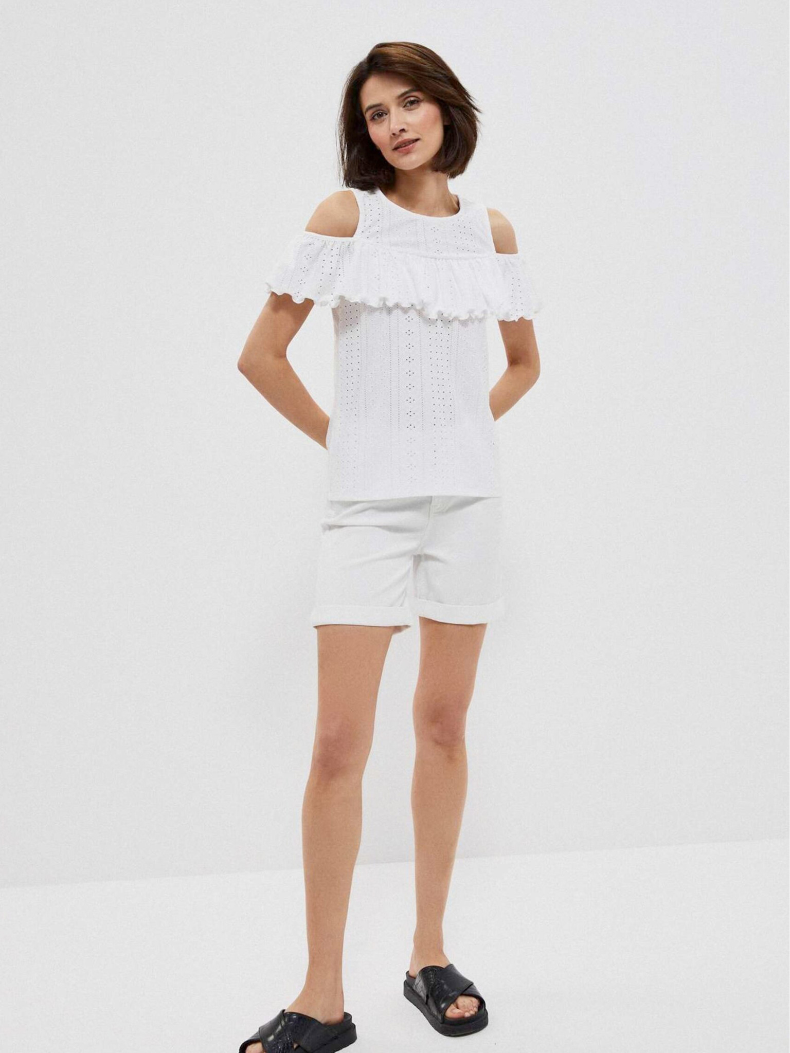 Бели дамски къси панталони Moodo