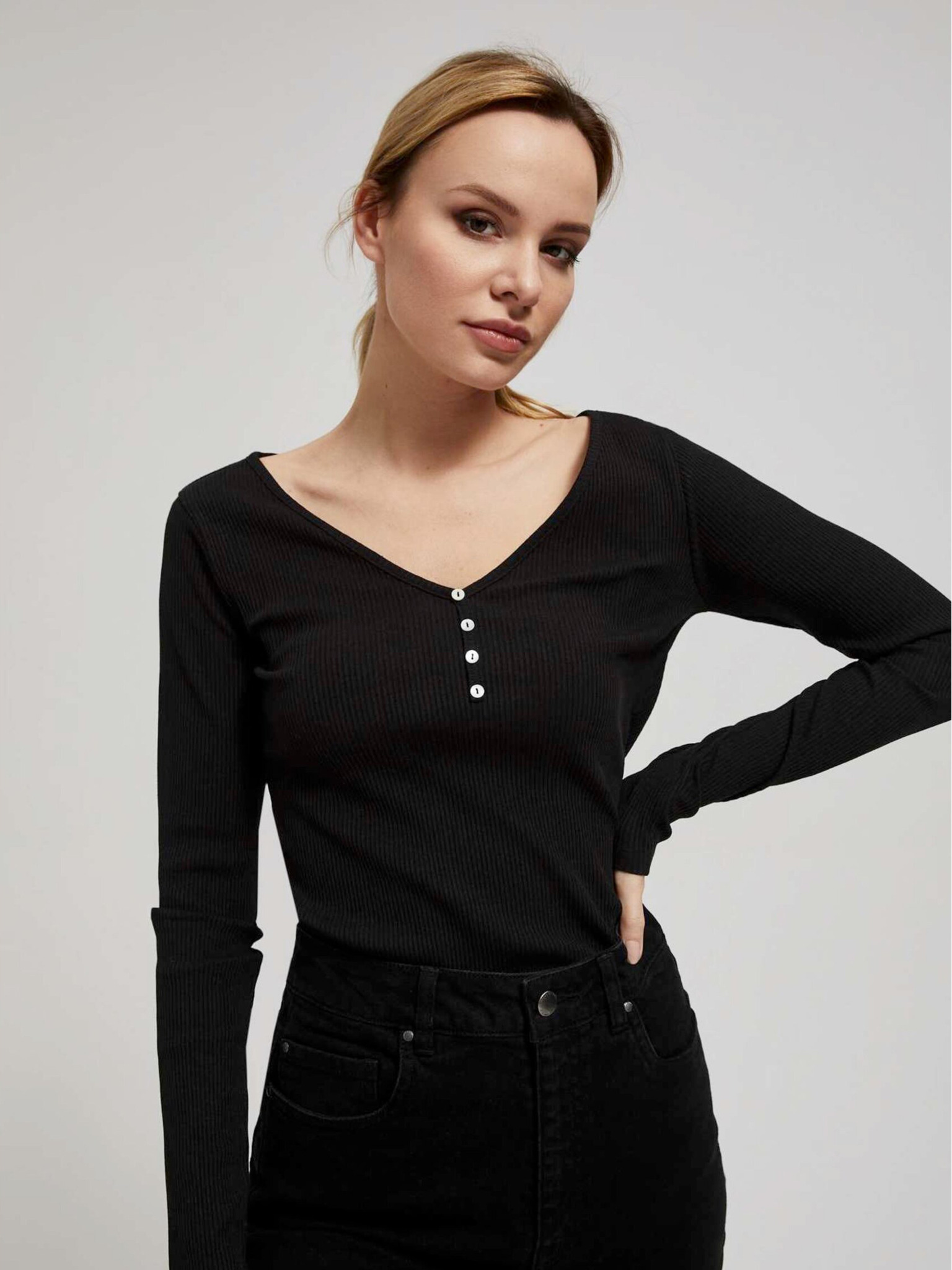 Черен топ с дълъг ръкав