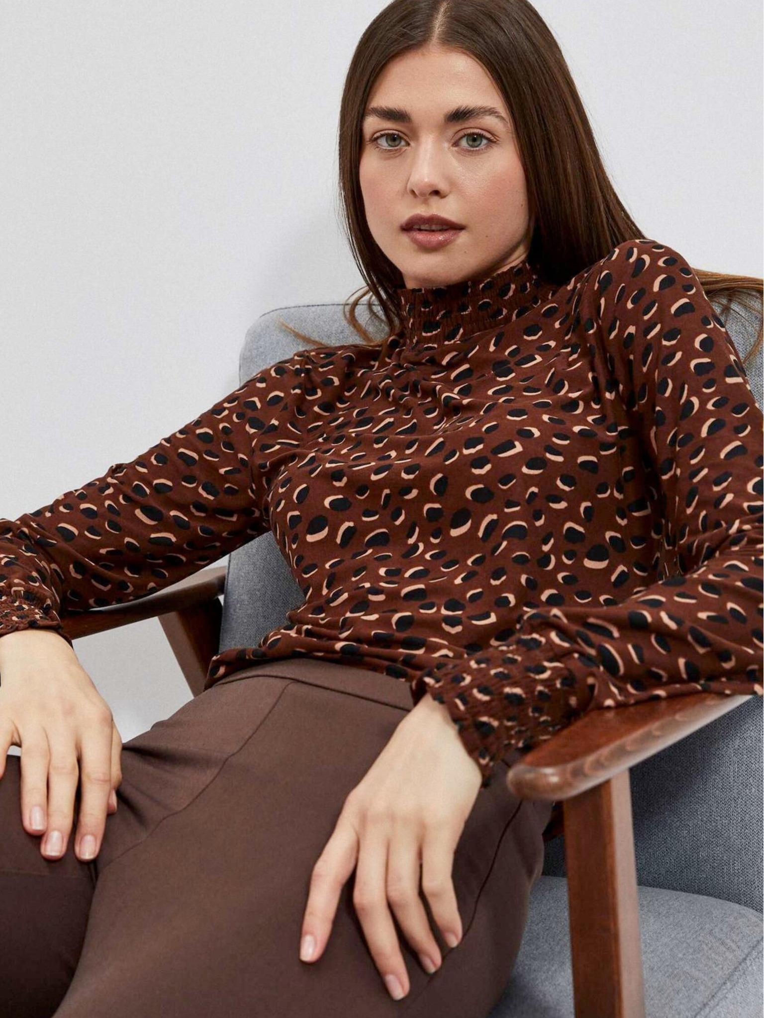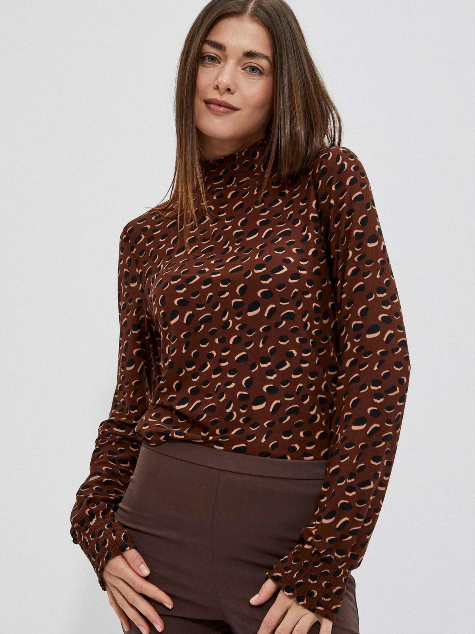 Кафяв дамски топ с дълъг ръкав