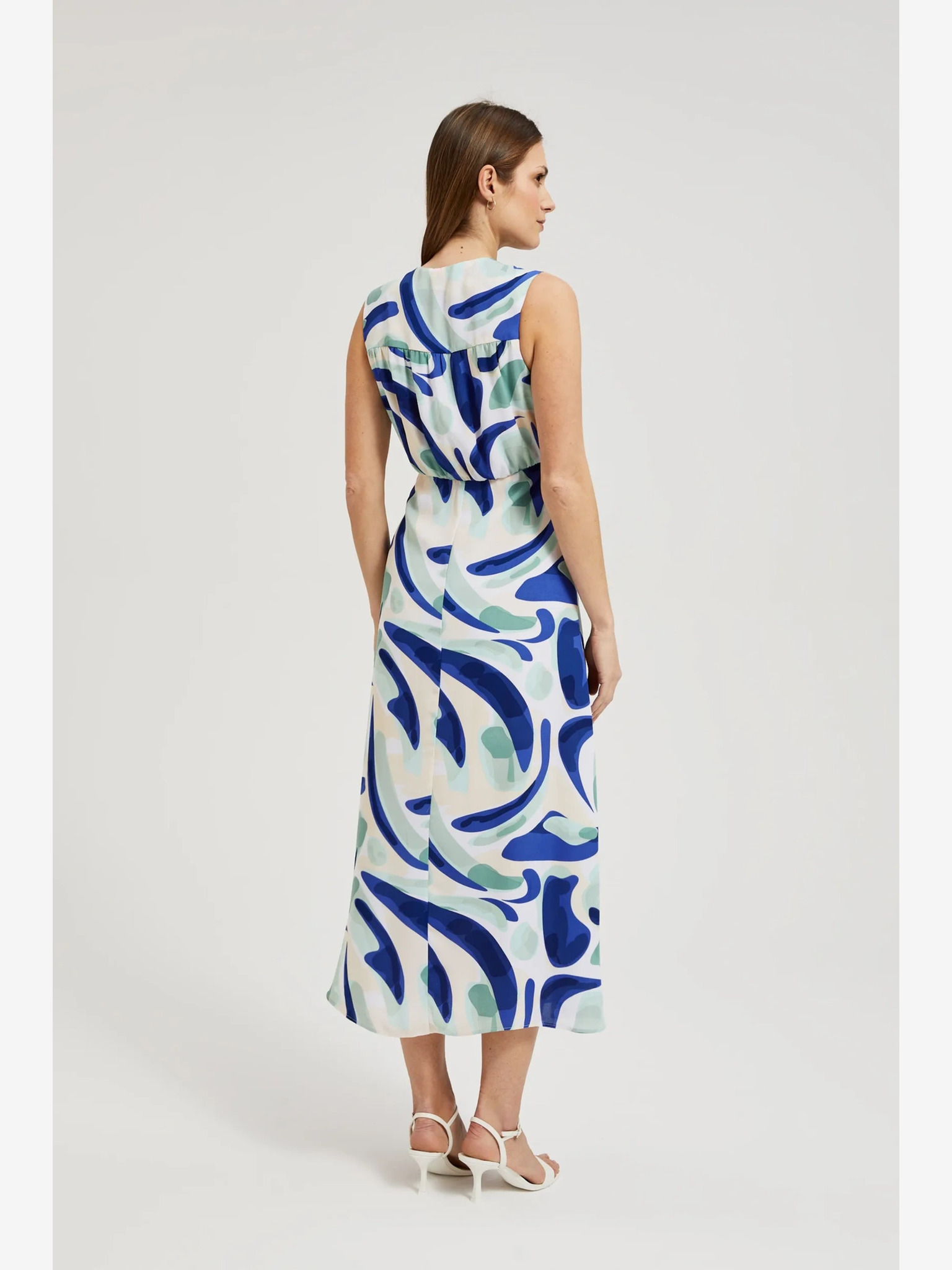 Бяла и синя дамска шарена рокля Moodo