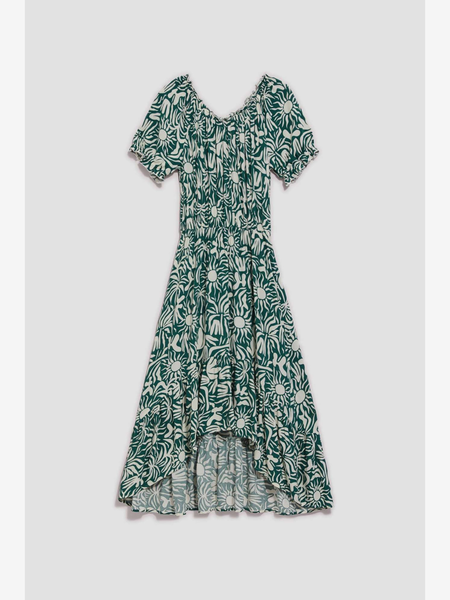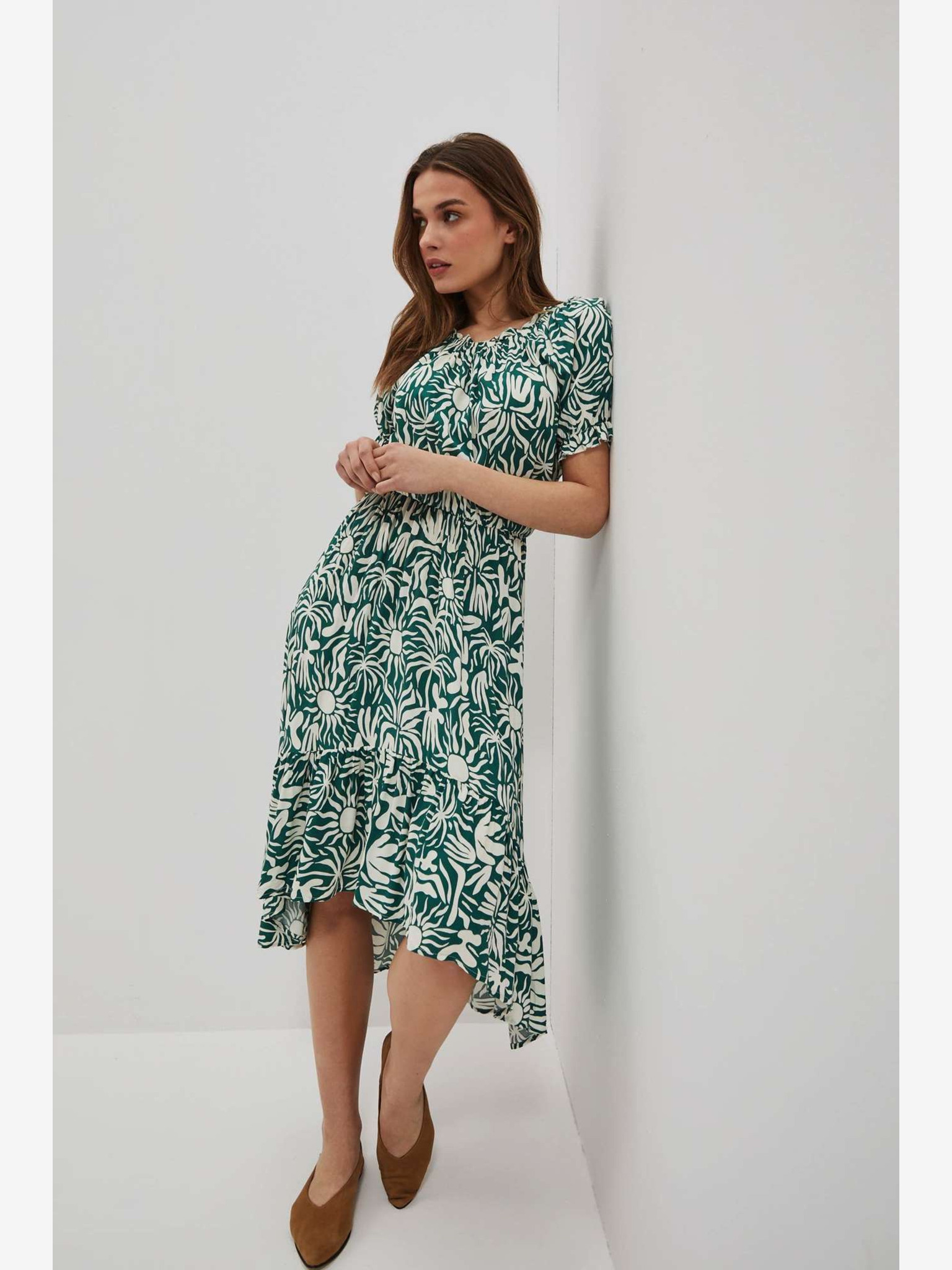 Зелена рокля от вискоза с волани Moodo