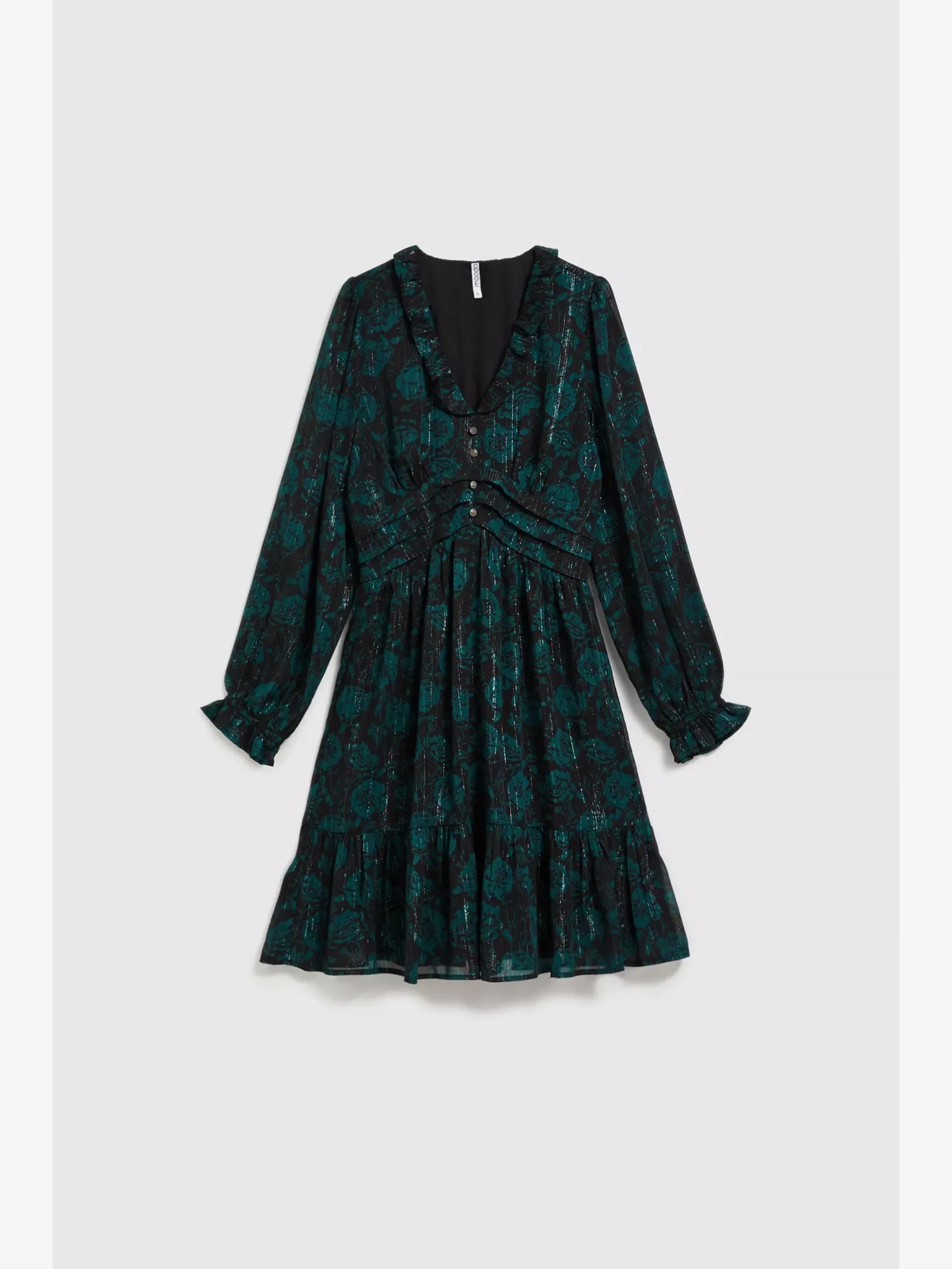 Рокля с волани и трапец - зелена Numoco NELL