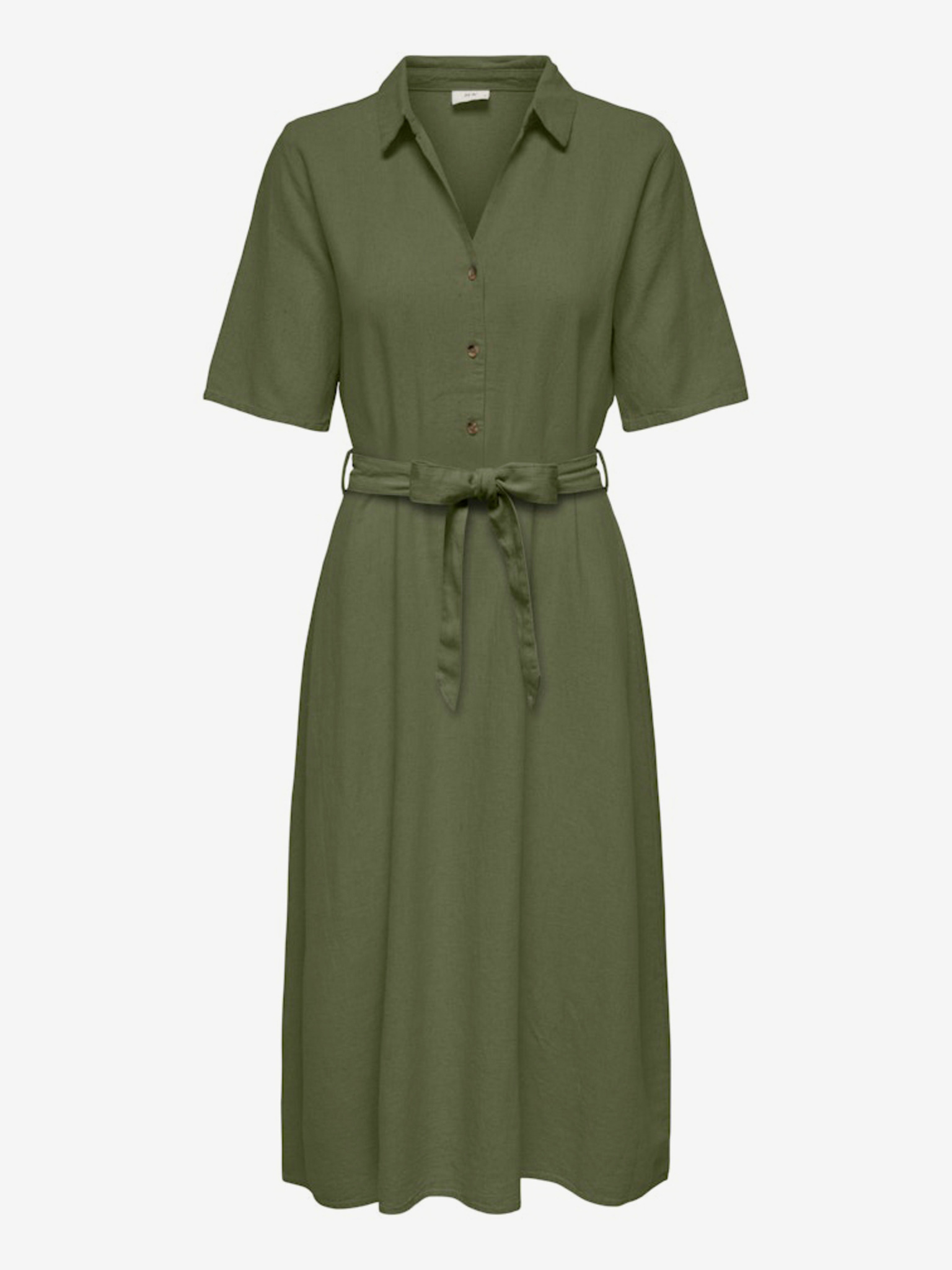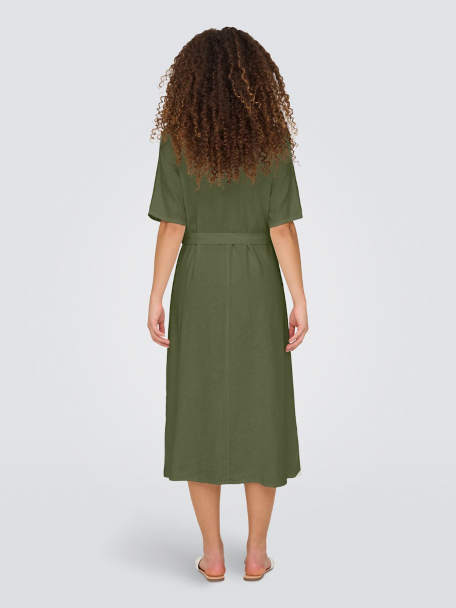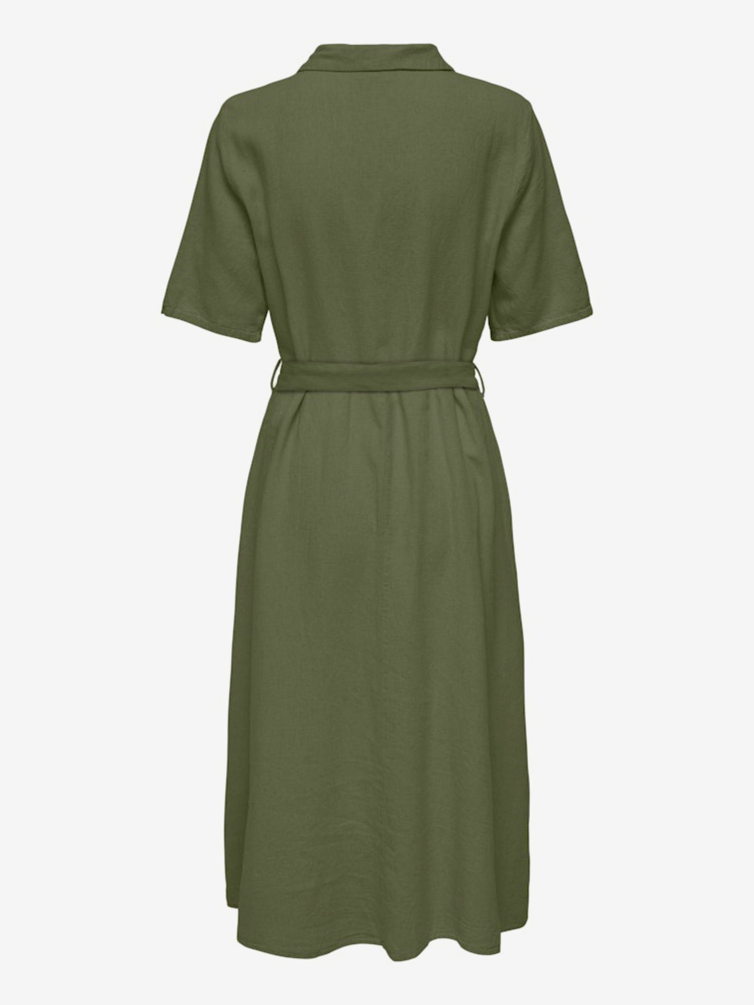 Ризообразна оливена рокля CAMILLE с джобове и връзване