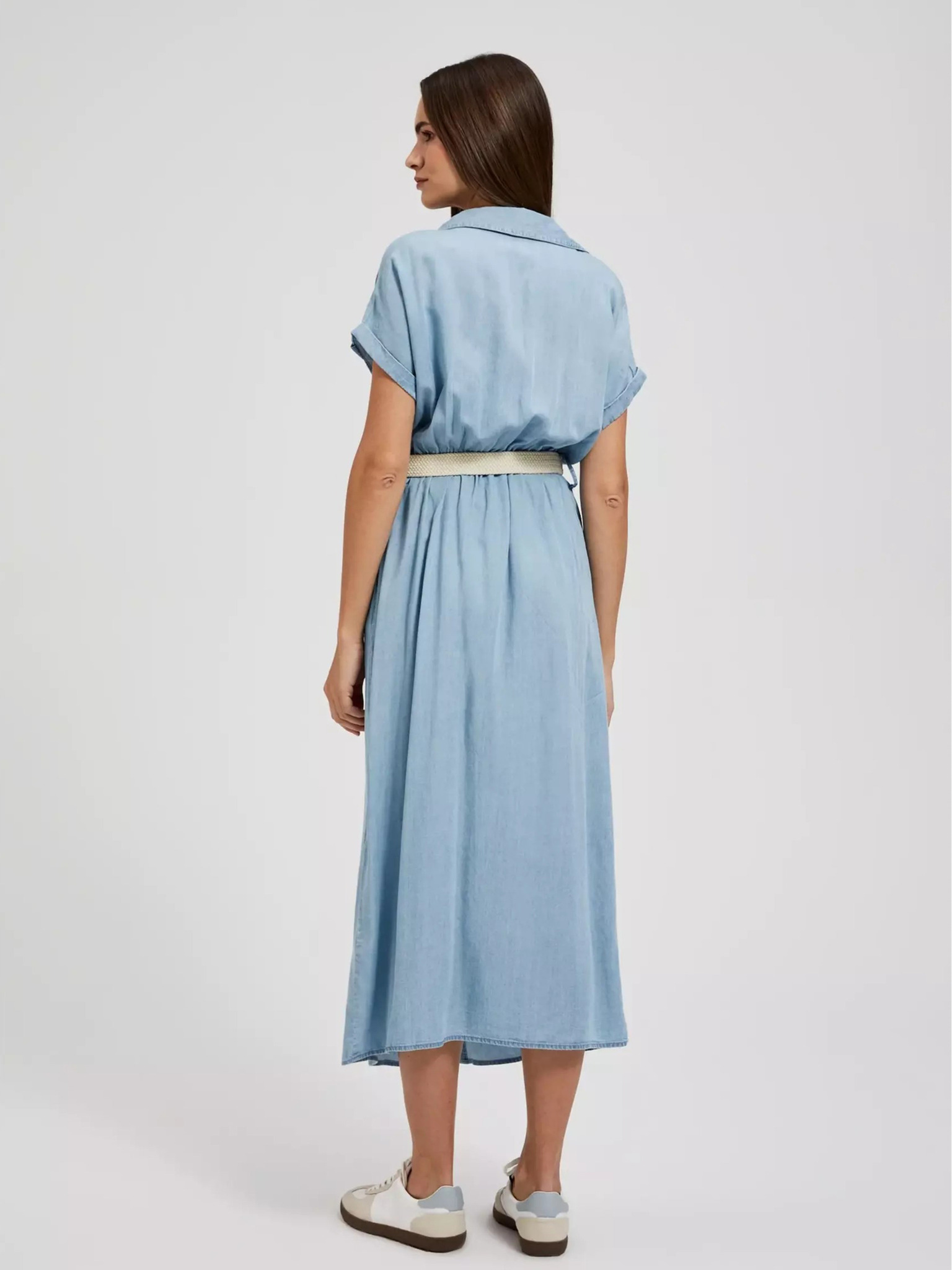 Синя миди рокля от лиоцел Moodo