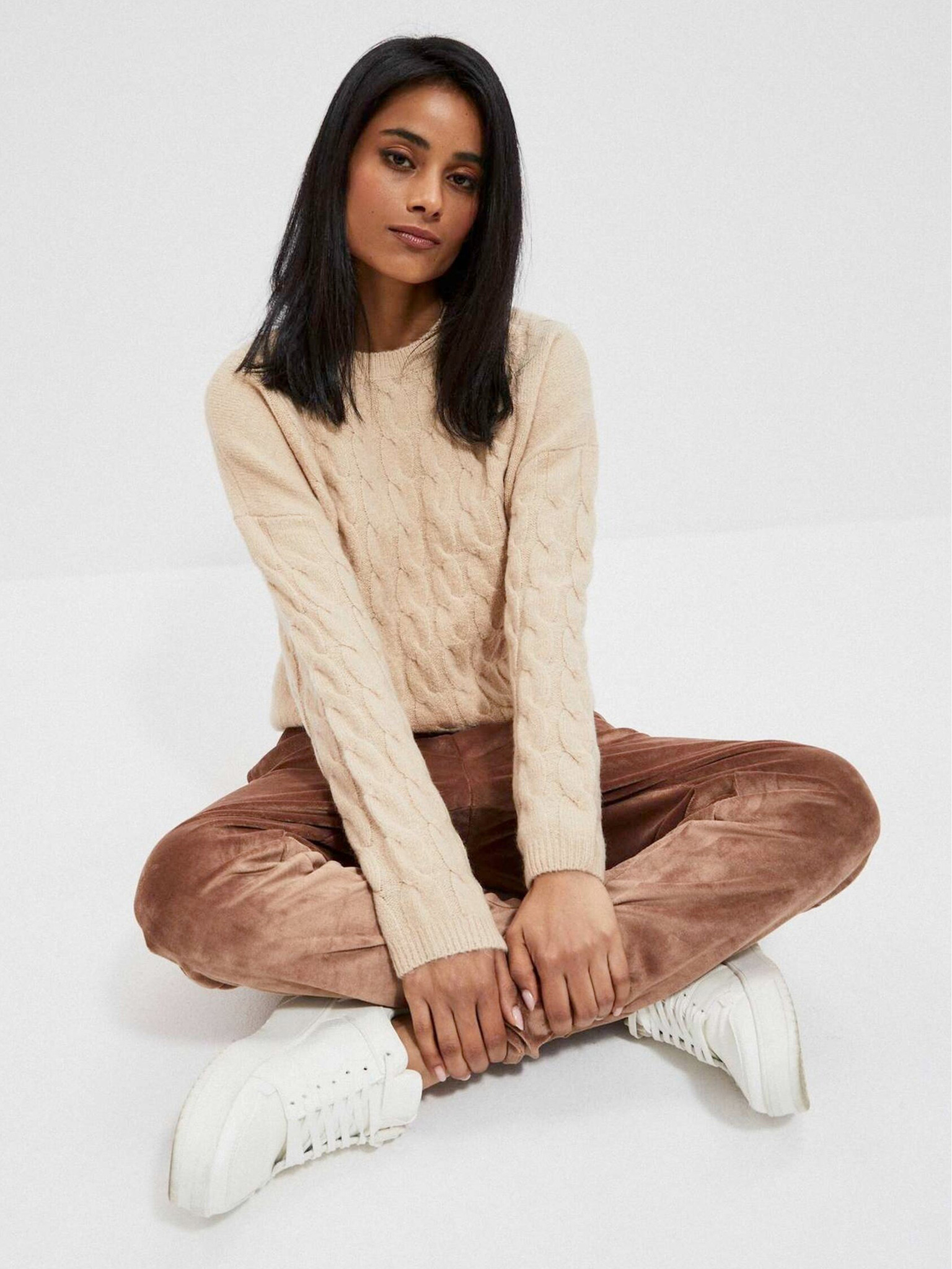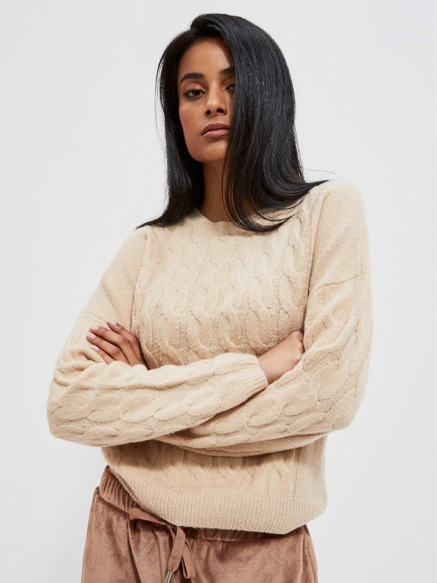 Бежов дамски пуловер Moodo