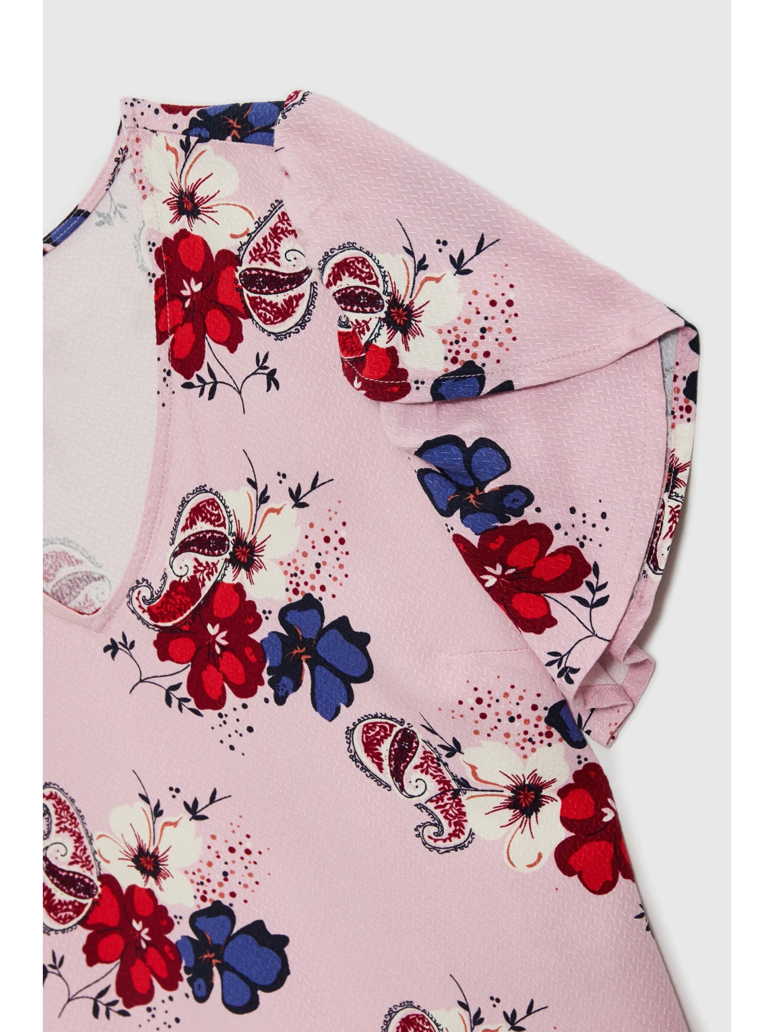 Розова цветна риза с набрани ръкави Moodo
