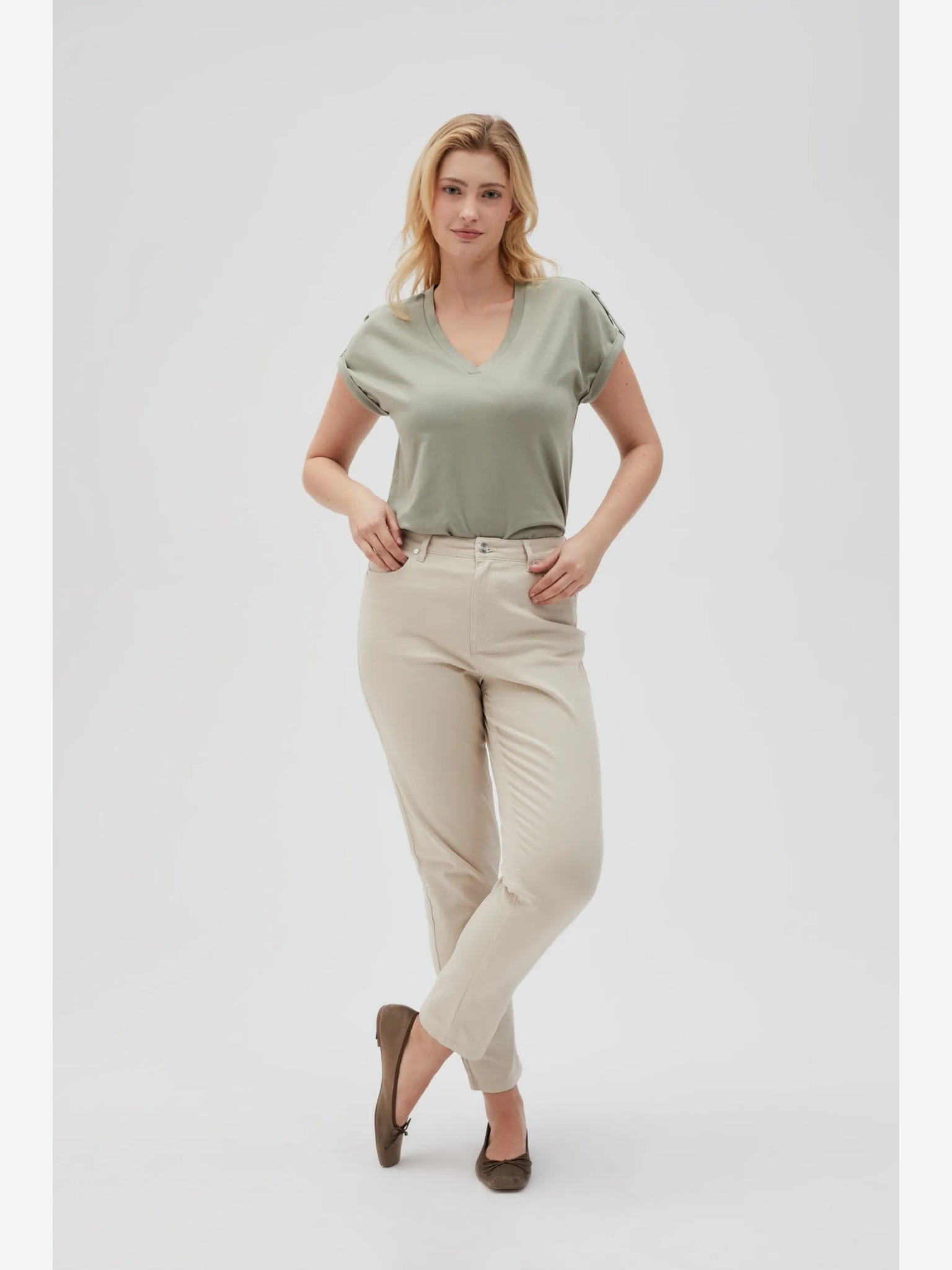 Светлокафяви свободни панталони Moodo