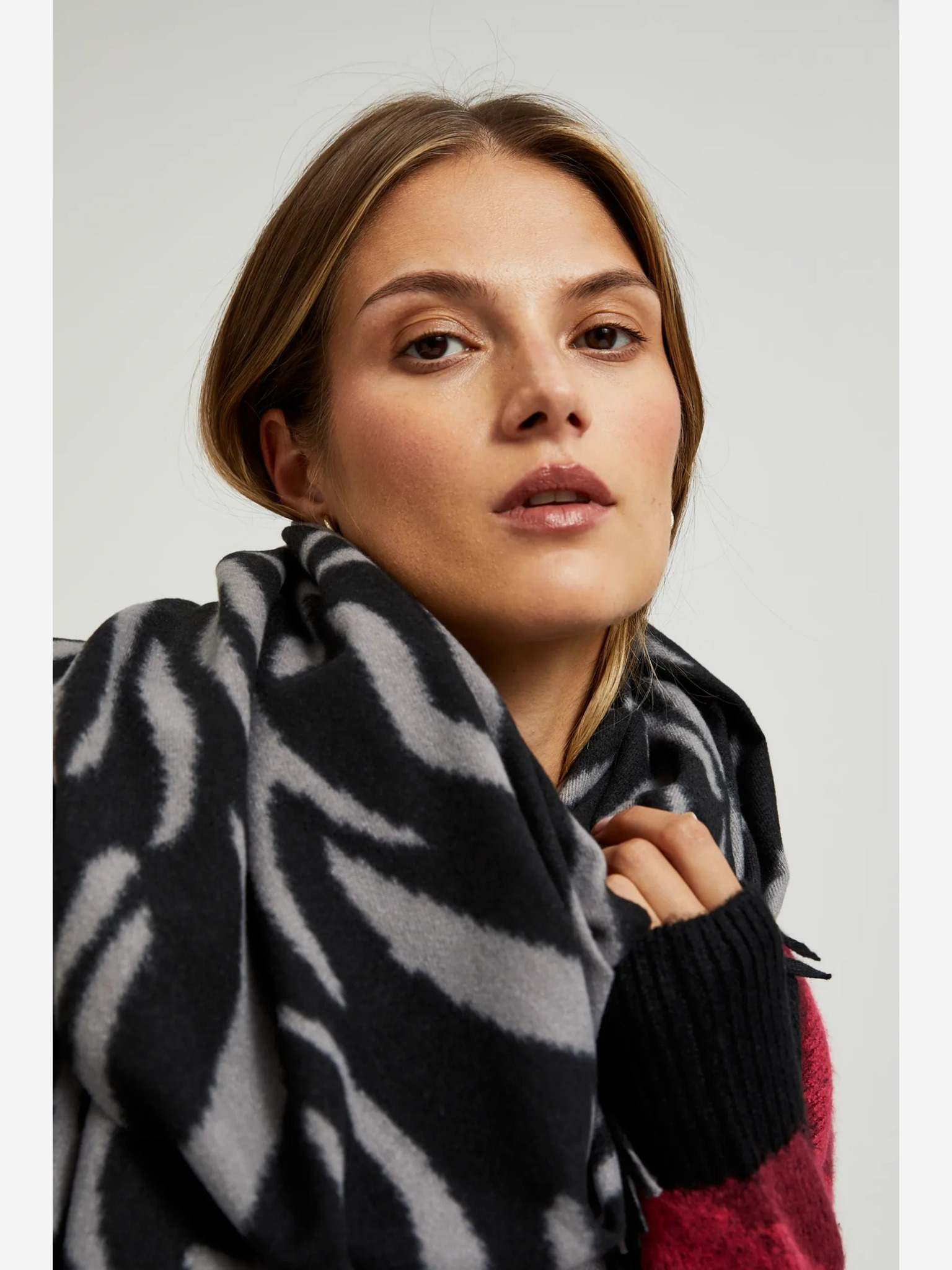Бяло и черно дамско шарено шалче Moodo