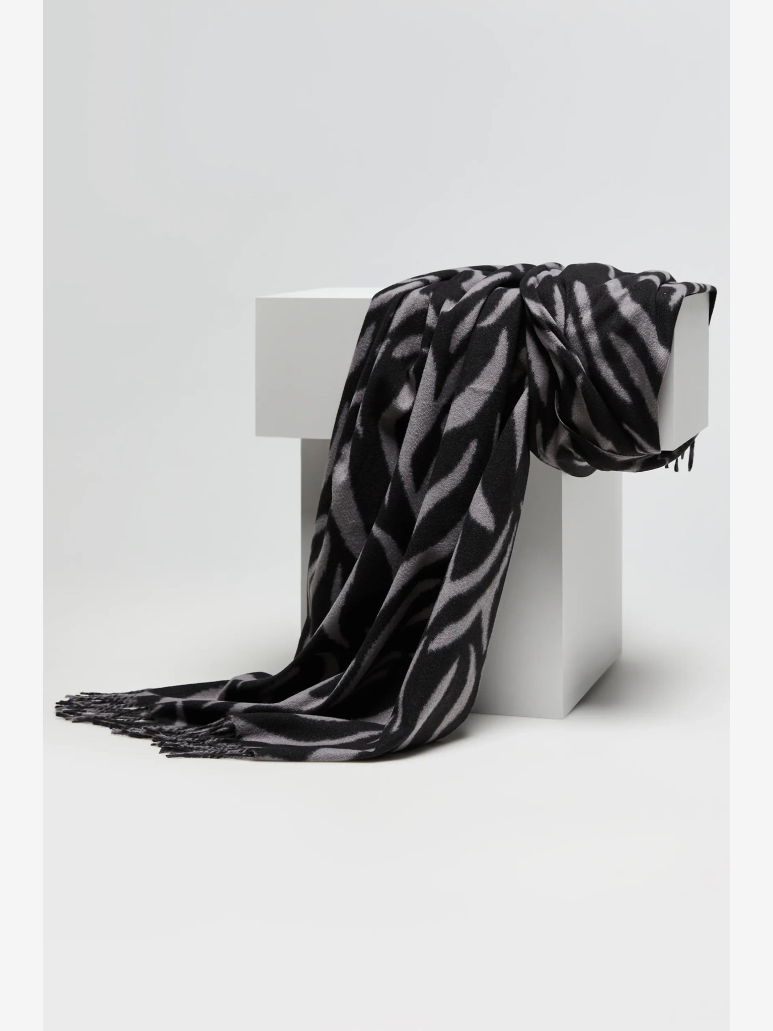 Черно-бял дамски шал на цветя Moodo