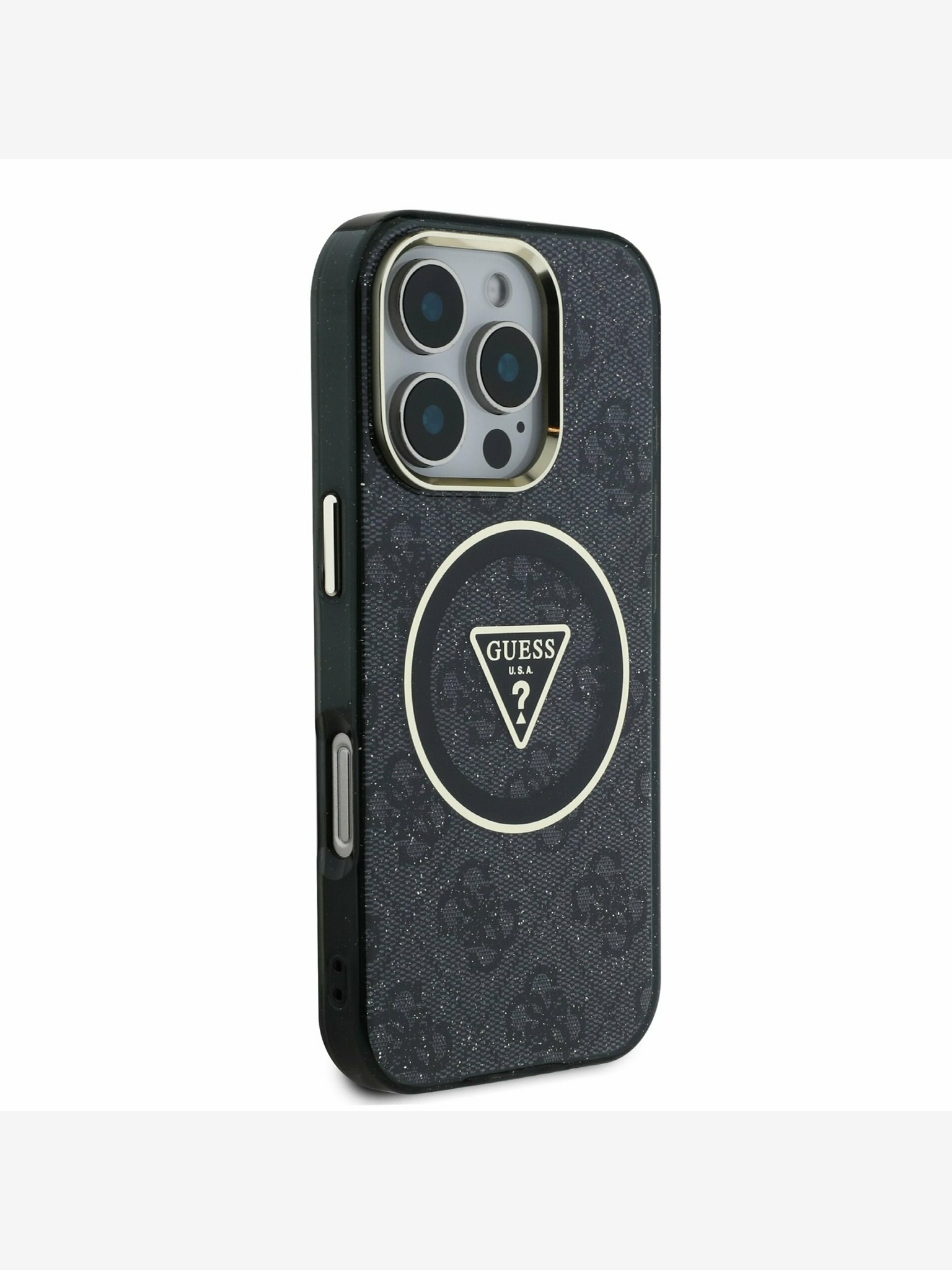 Guess PU 4G Metal Logo Strap Заден капак за iPhone 16 Черно