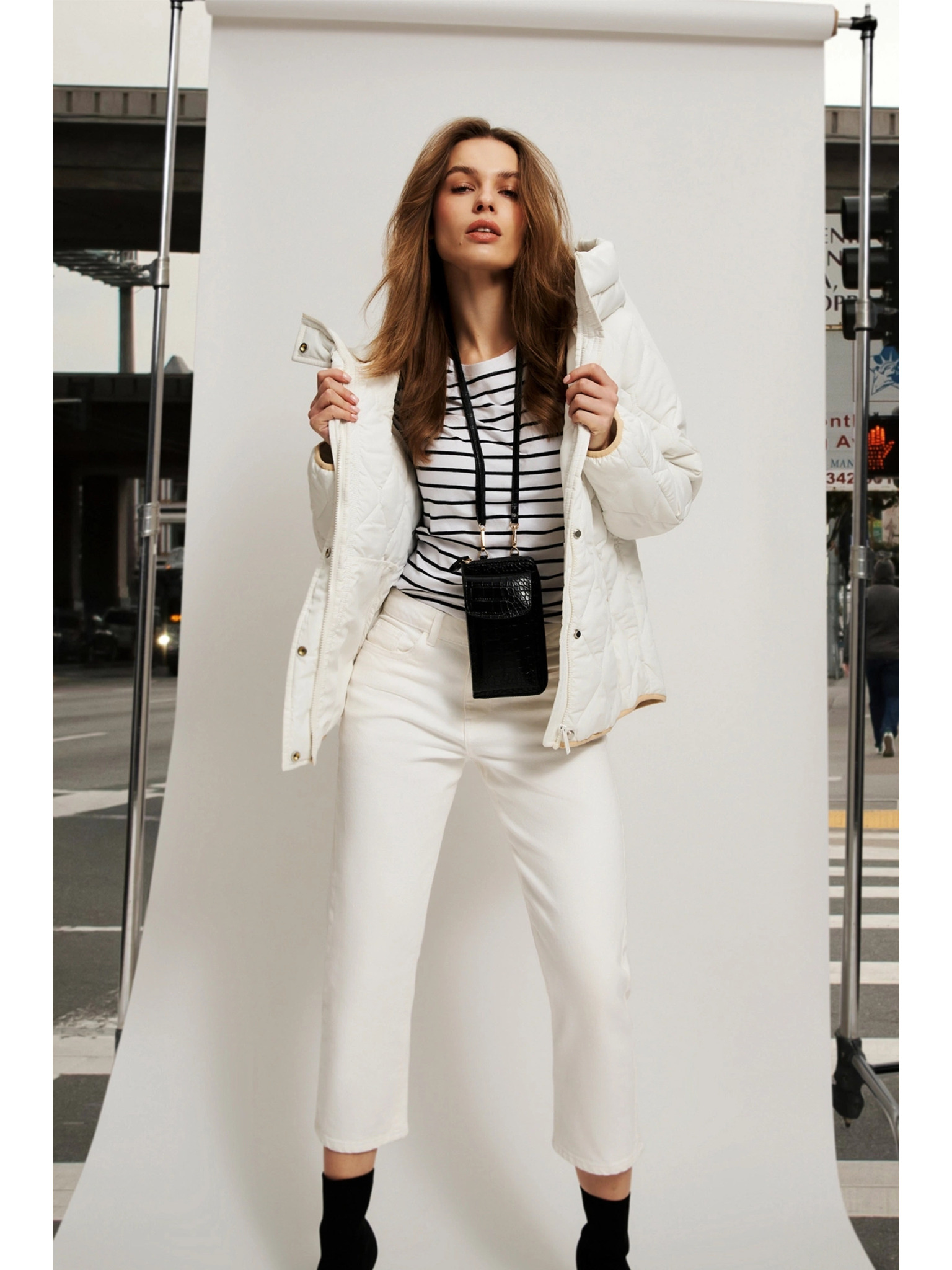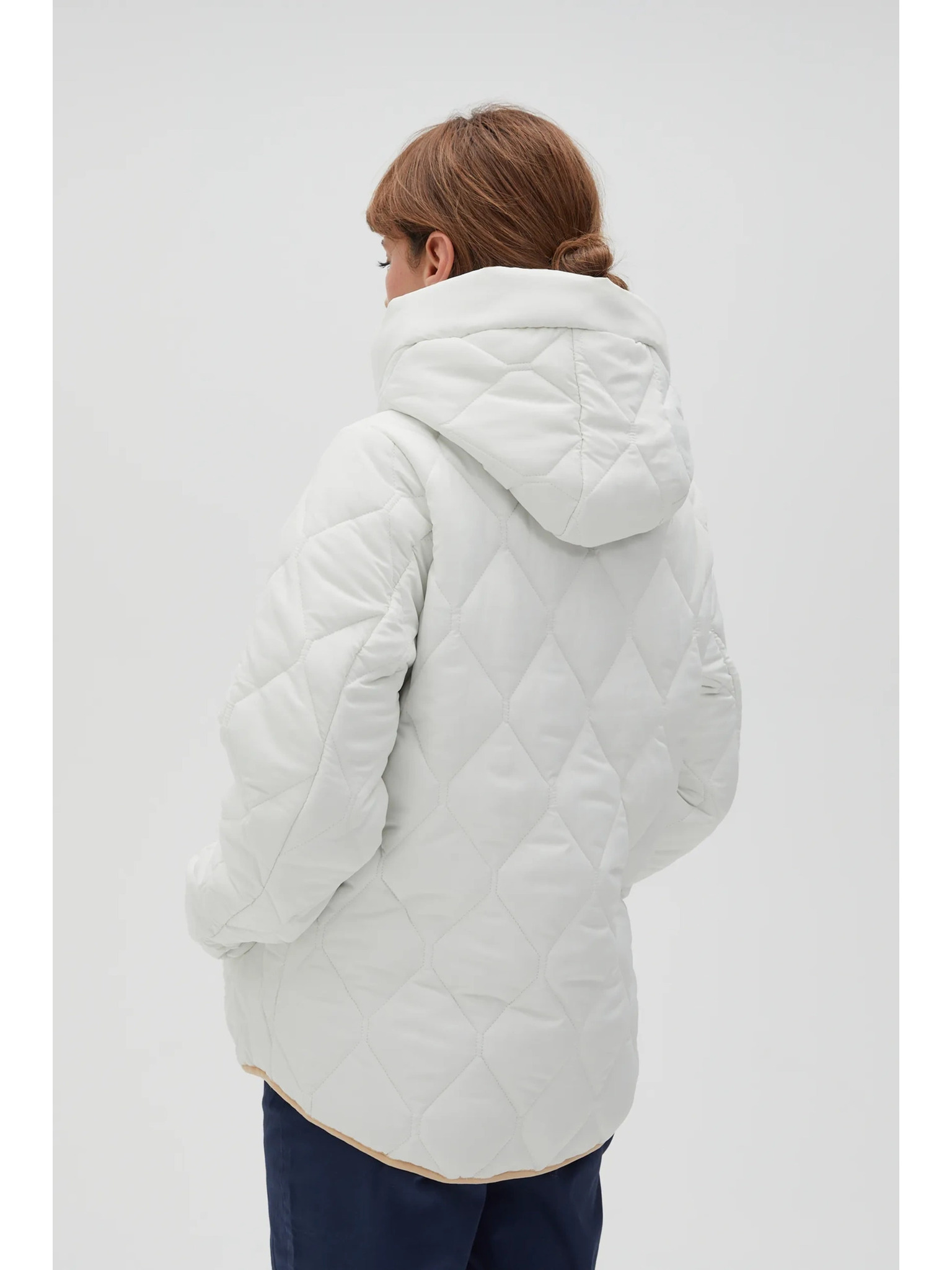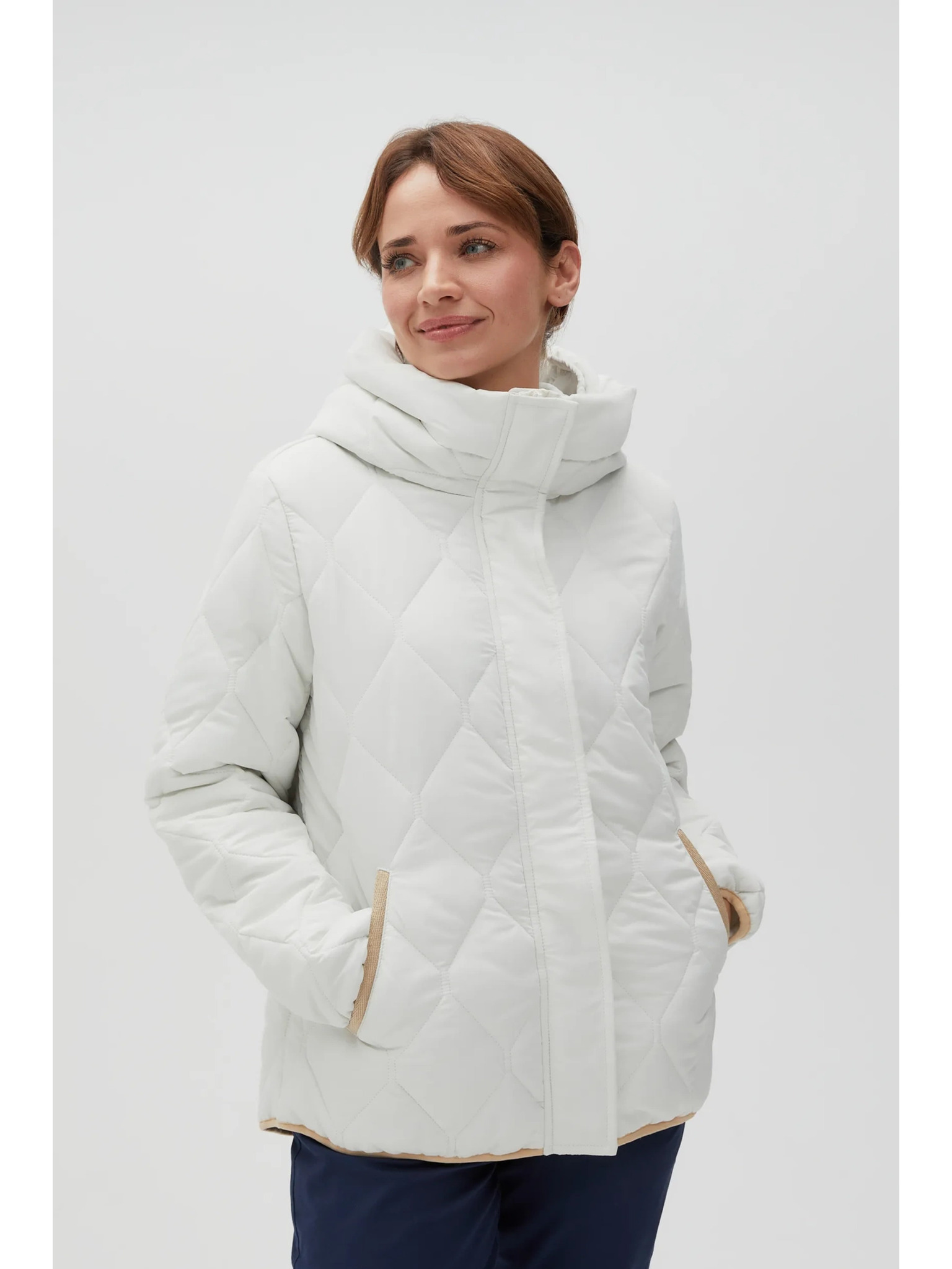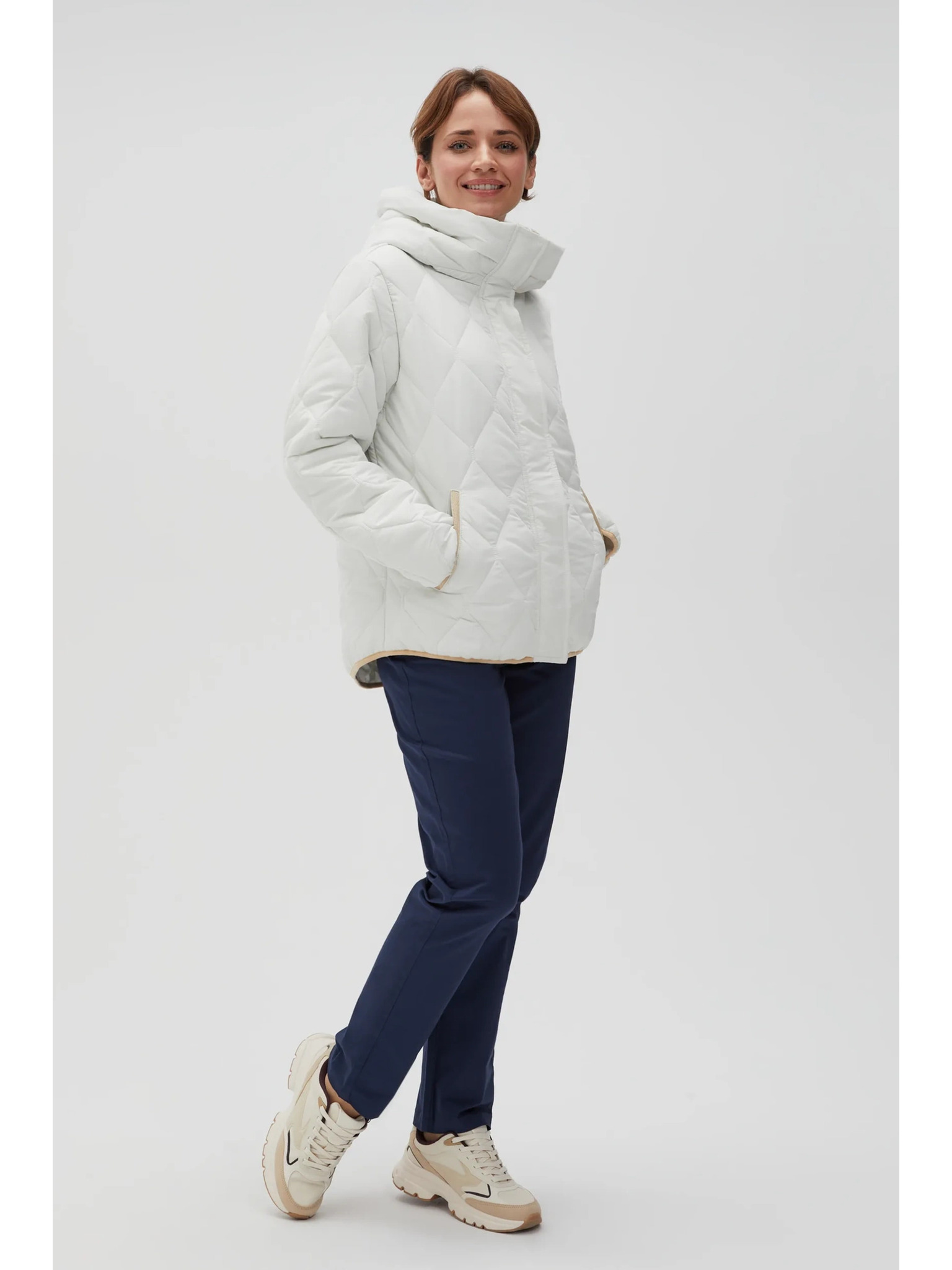 Кратко стегнато яке с качулка в бежово Moodo