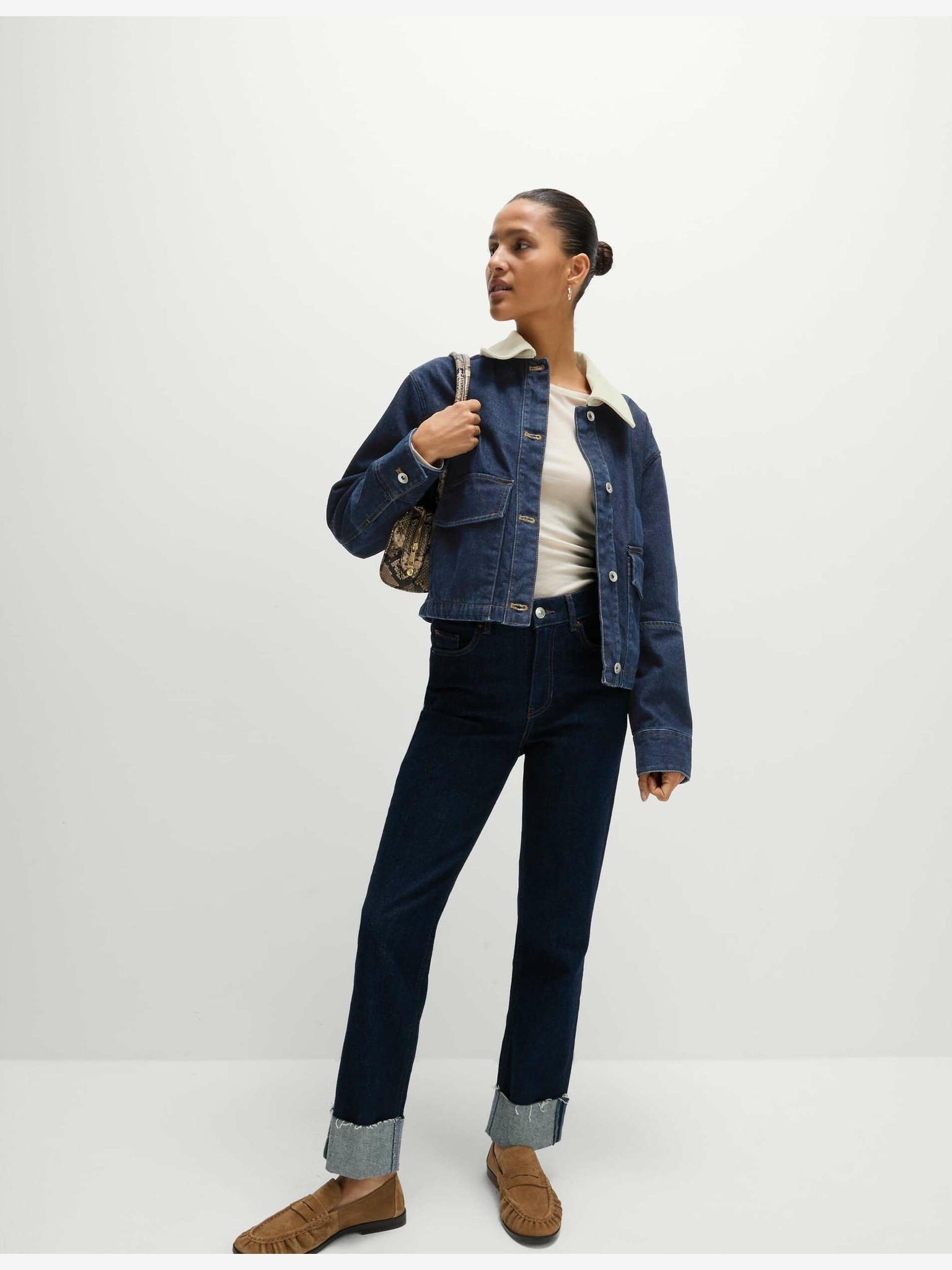 Свободно прилепнало дънково яке с яка Marks & Spencer тъмносиньо