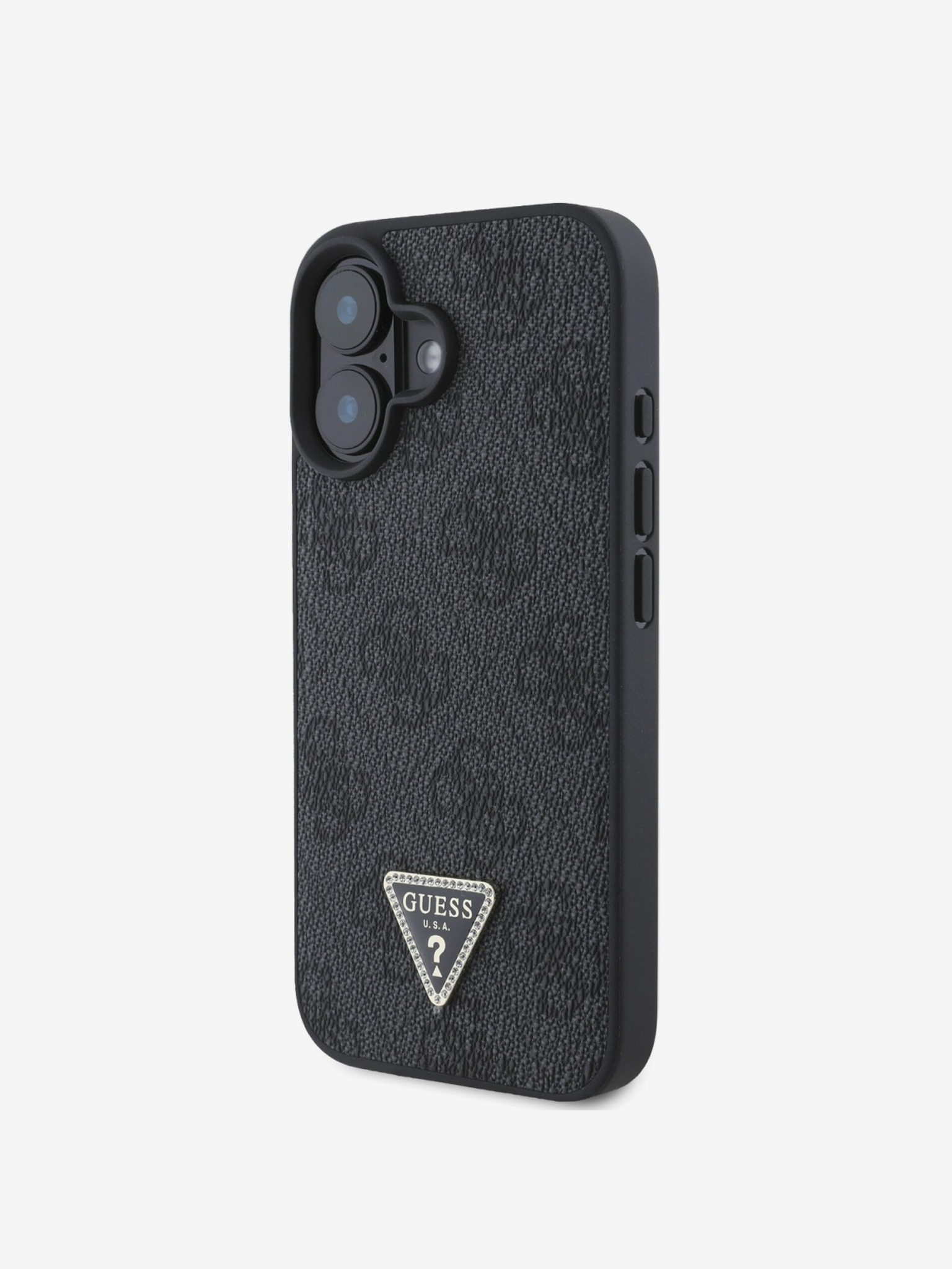 Guess PU 4G Metal Logo Strap Заден капак за iPhone 16 Черно