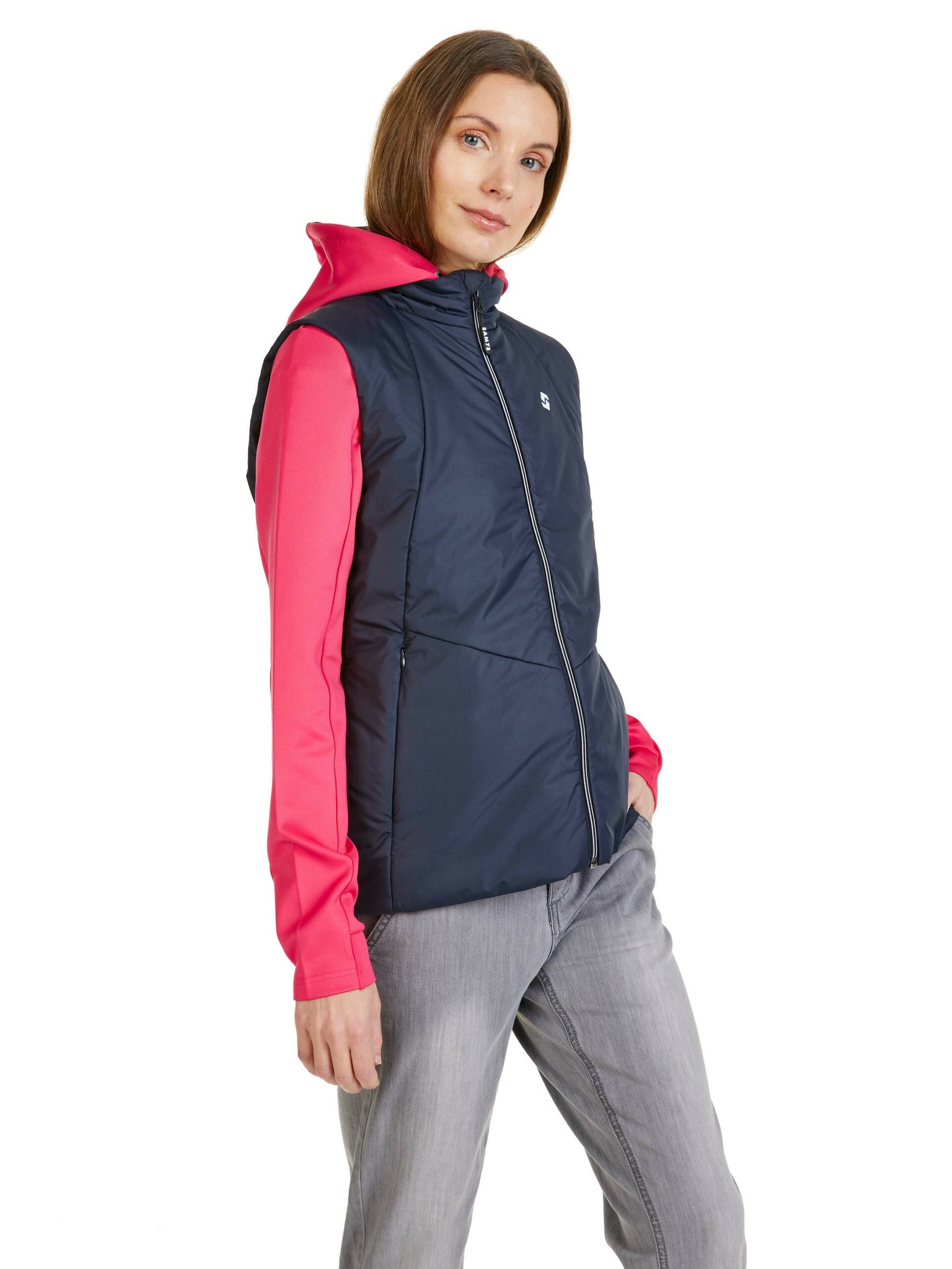 Дамска дълга ватирана жилетка с ръка ALPINE PRO UREFA синя