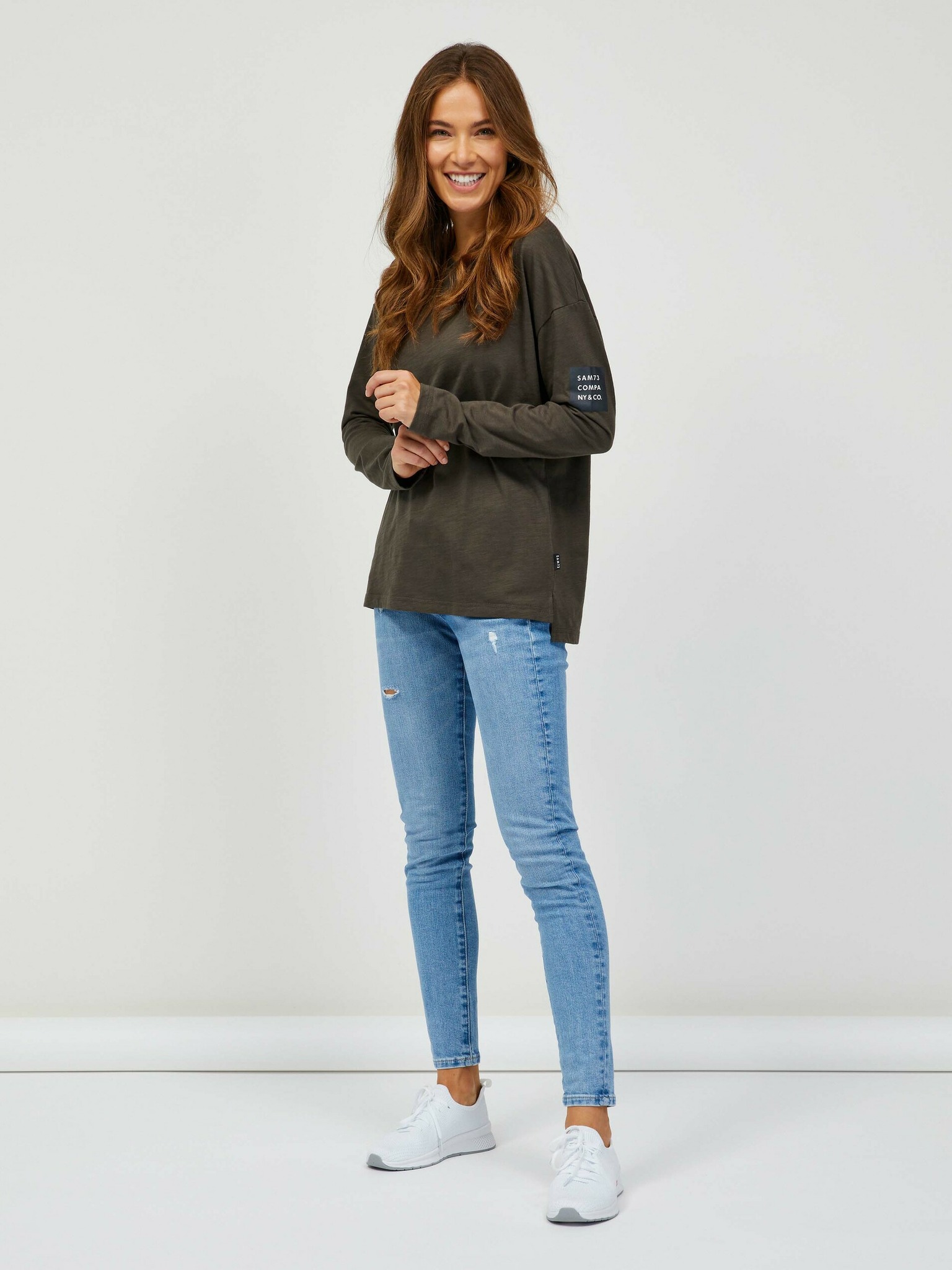 Бяла дамска тениска с дълъг ръкав SAM 73 Sherri
