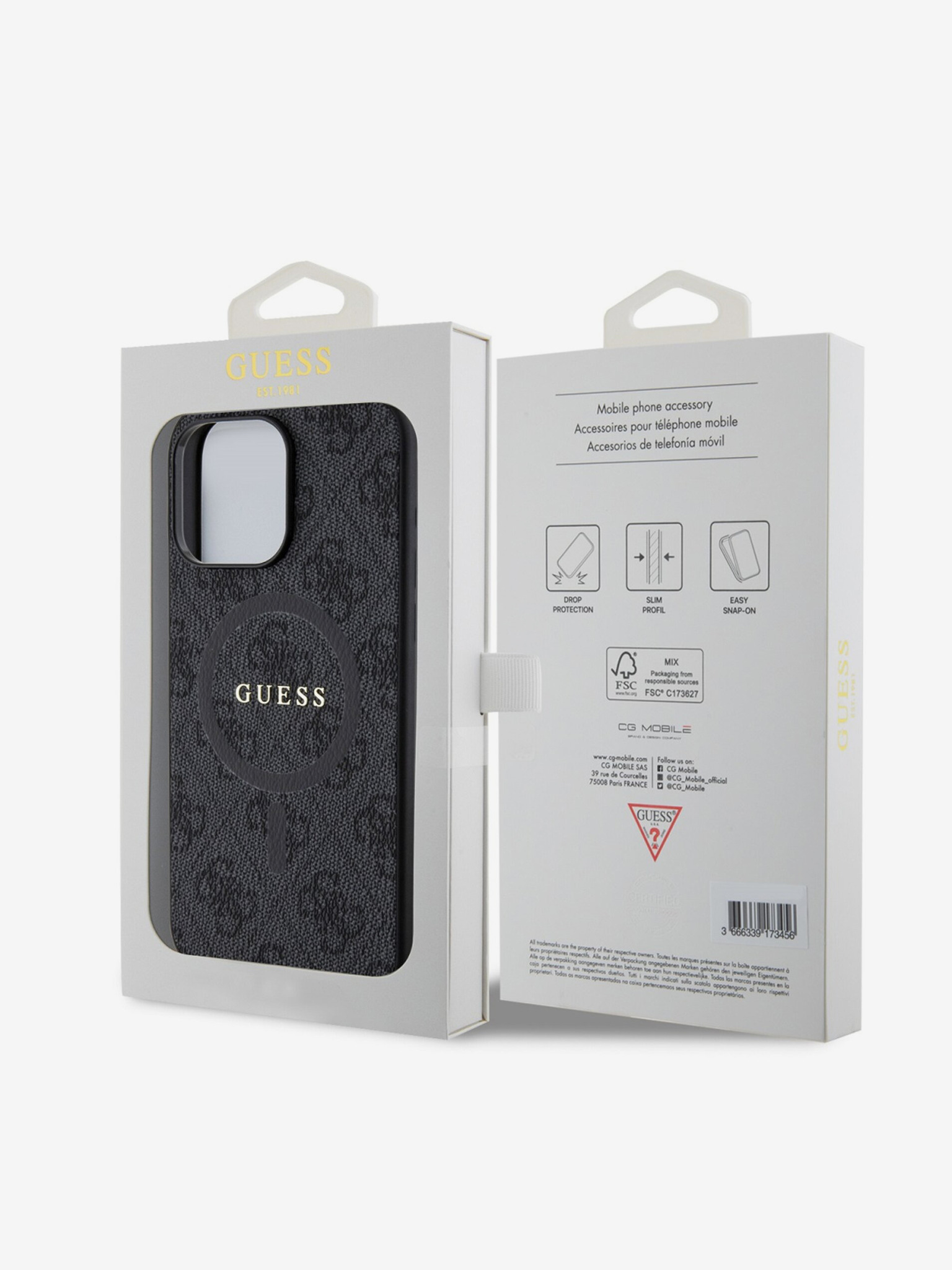 Guess PU кожа 4G Цветен пръстен MagSafe заден капак за iPhone 15 Pro Max черен