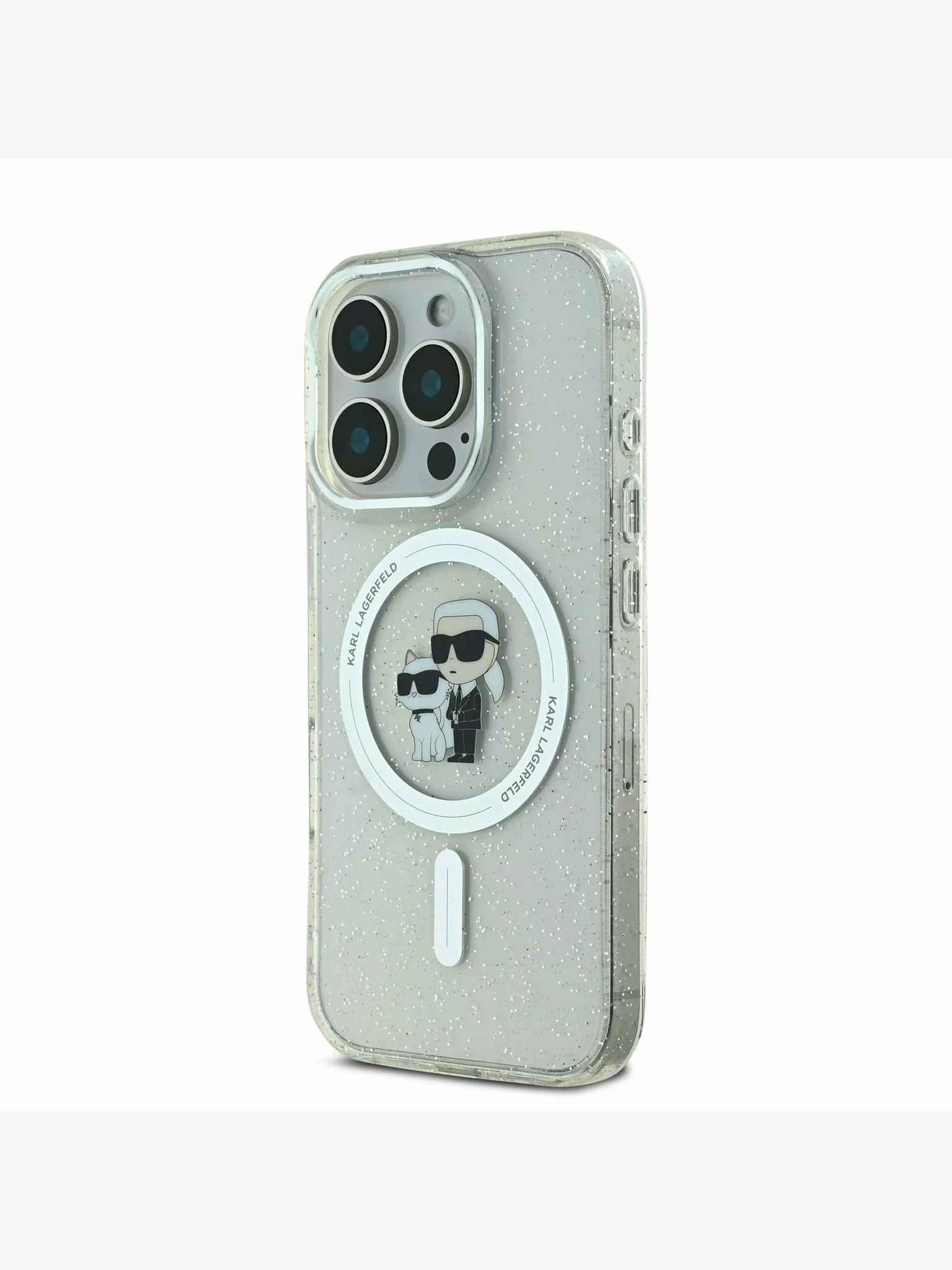 Karl Lagerfeld IML Брокат Карл и Шупет Скица MagSafe Заден Капак за iPhone 16 Pro Прозрачен