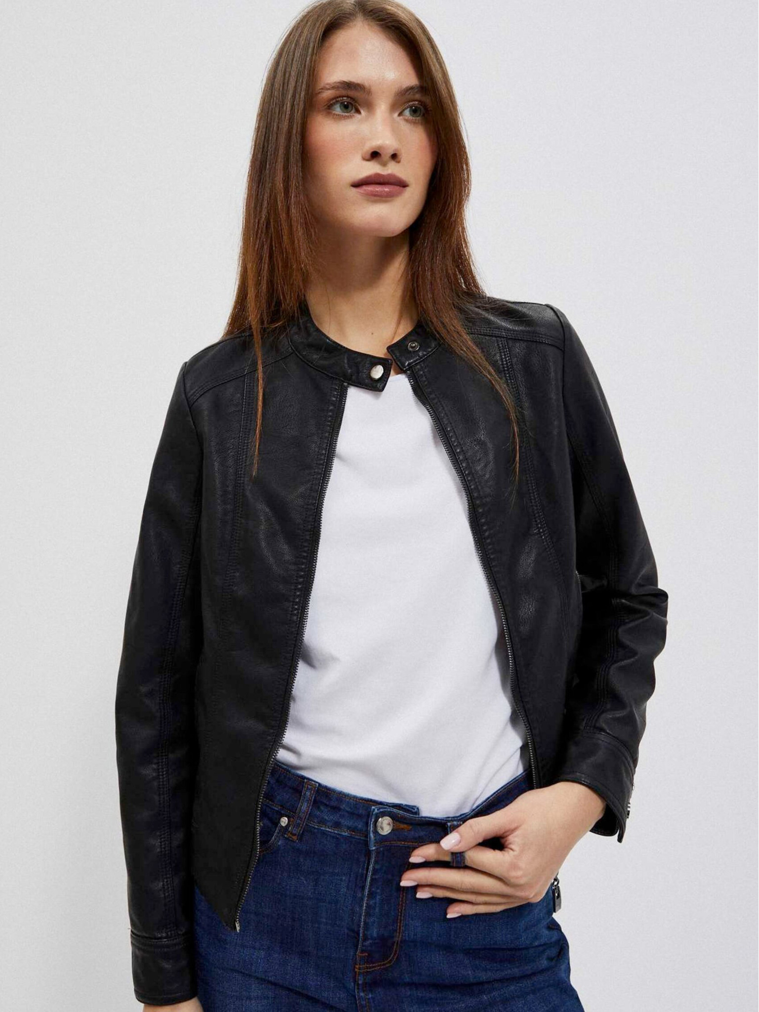 Черно дамско кожено яке Moodo